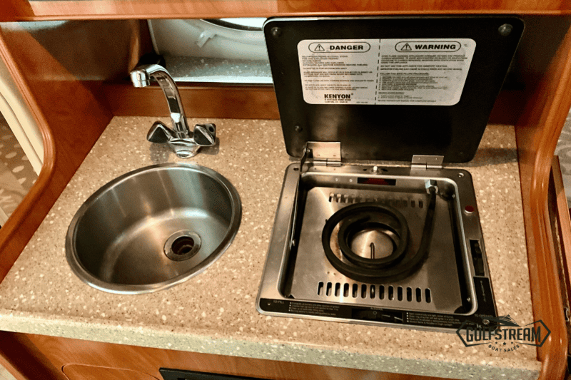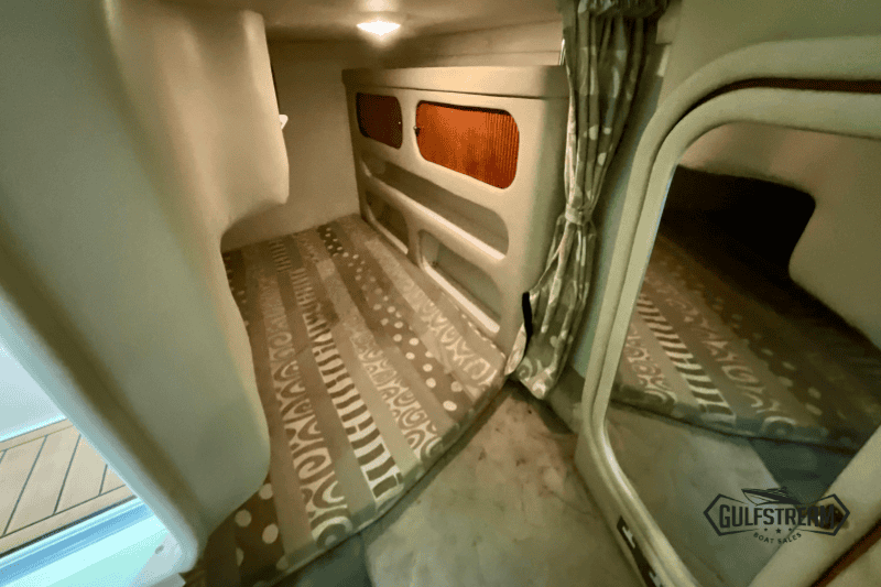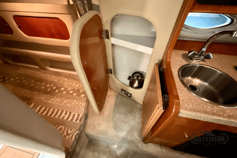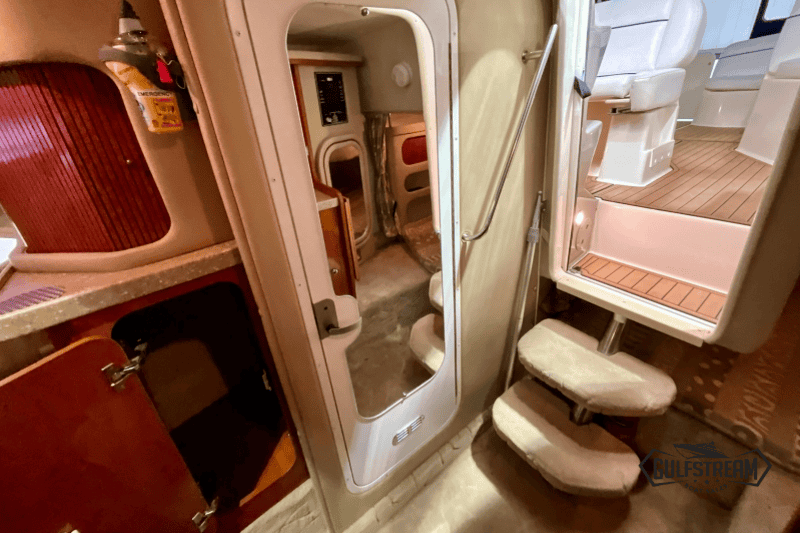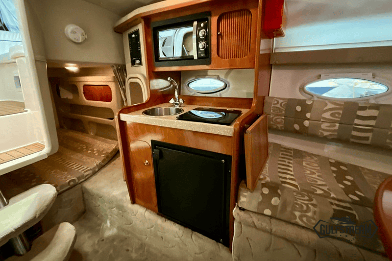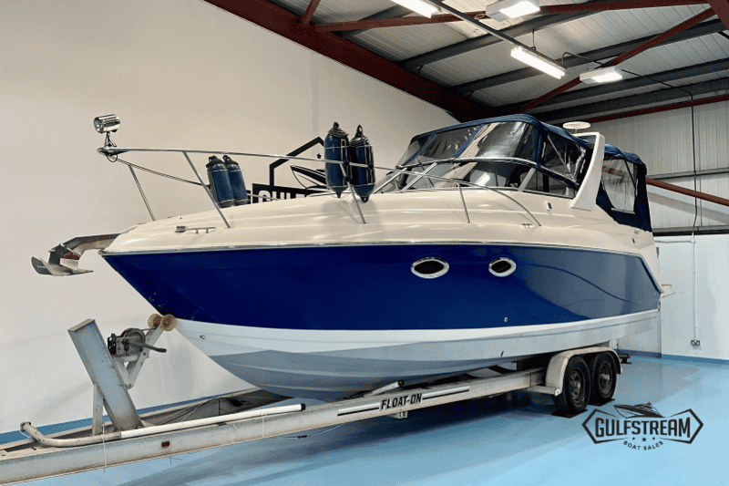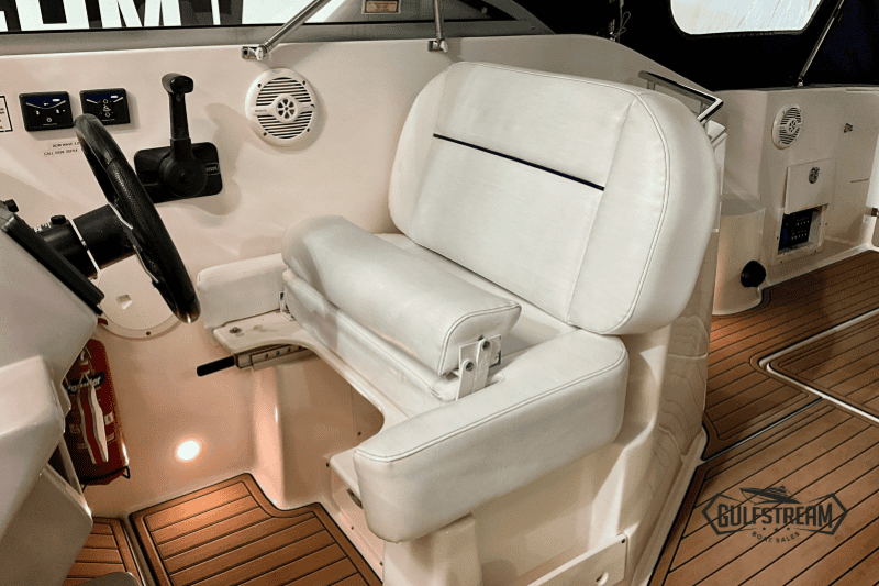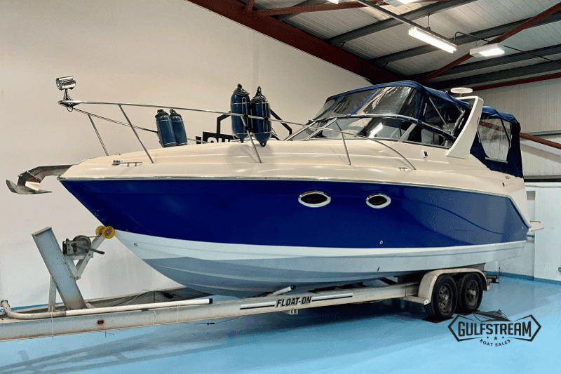 This boat is still basically an entry level sports cruiser – it has 4 berths in 2 cabins, it has a single Diesel engine, it has a separate heads and shower compartment, it has a proper galley, and you can even put it on a trailer for winter storage.