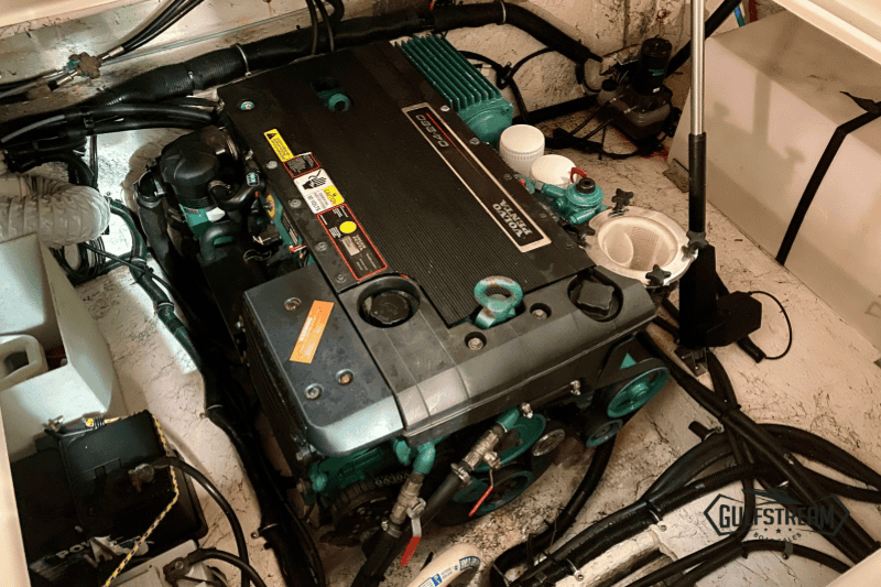 It boasts a very good spec level, including cabin heating, teak-effect decking, full camper covers, Garmin chartplotter, vhf, etc, etc…