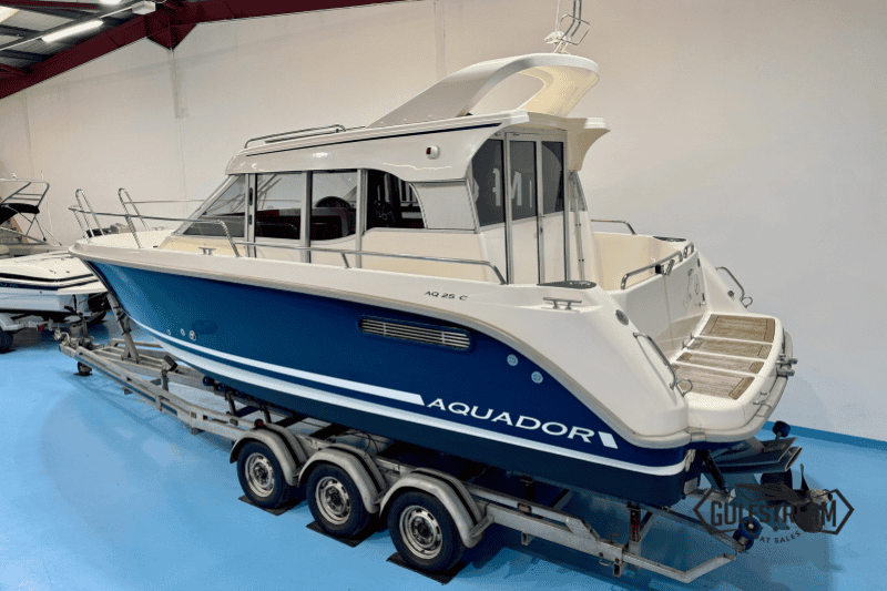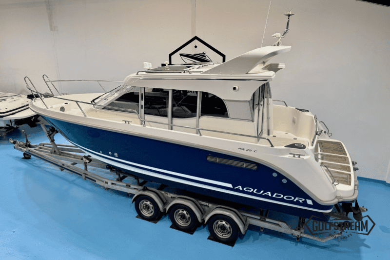 The Aquador 25 C is a fantastic family cruiser. Boasting Scandanavian build quality and sea-keeping, it combines excellent practicality and onboard comfort. Her wide walk-around side decks make it a very easy boat to handle in close quarters and maximises the usable deck space.