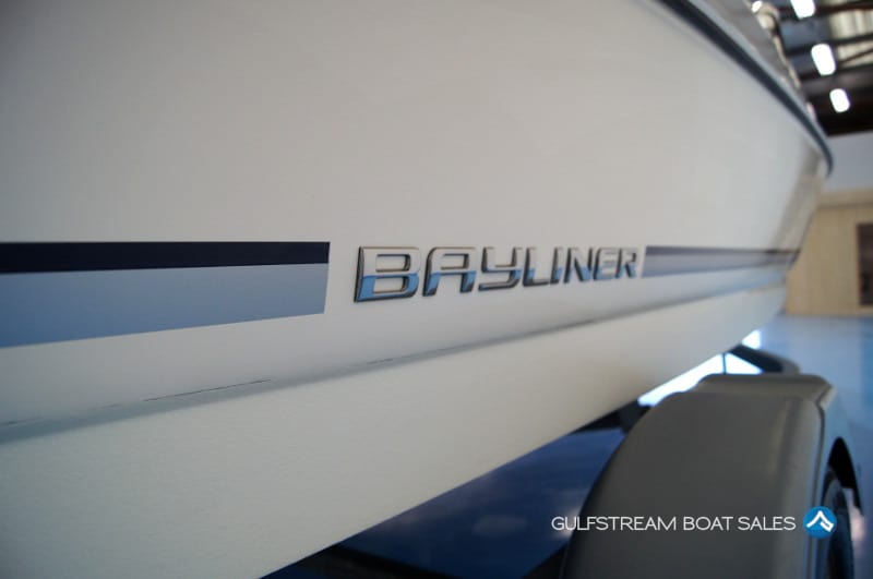 This one is not only immaculate but it’s also a little unique. We’ve put some custom graphics on it with a silver hull stripe to tie in with the silver accents on the upholstery and we’ve also added bang-up-to-date chrome Bayliner badges. This, combined with a new white rub rail insert gives this boat a look unlike any other Bayliner 175 out there. I reckon this sharper look compliments the crisp lines of this boat perfectly and means she looks like brand new.