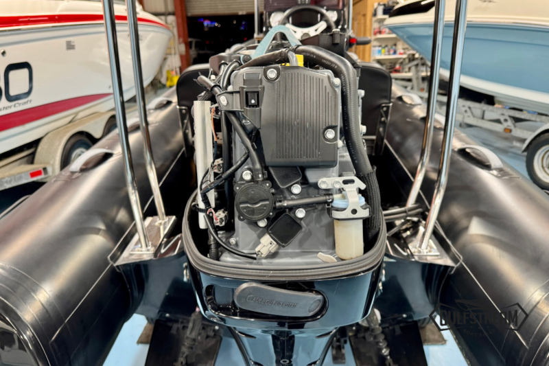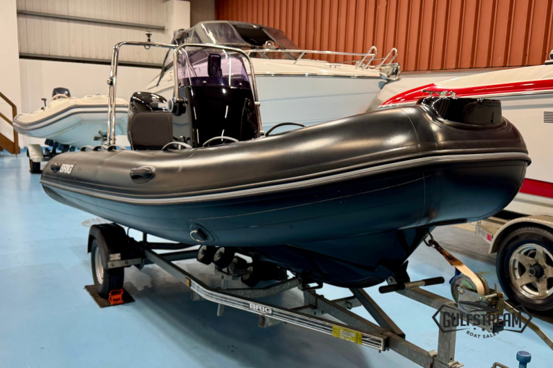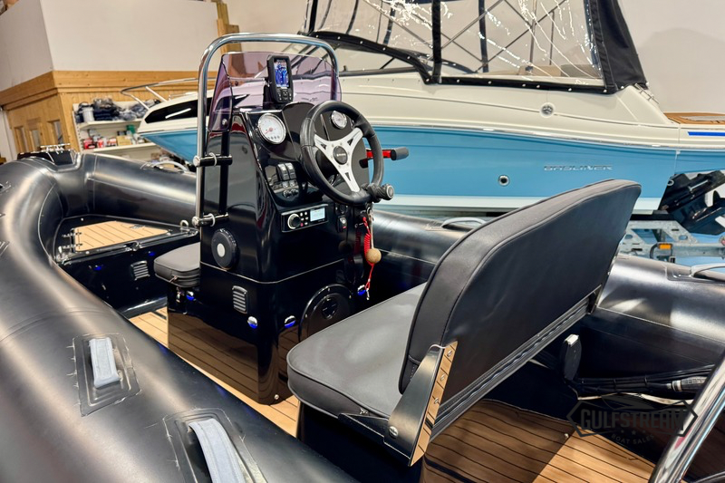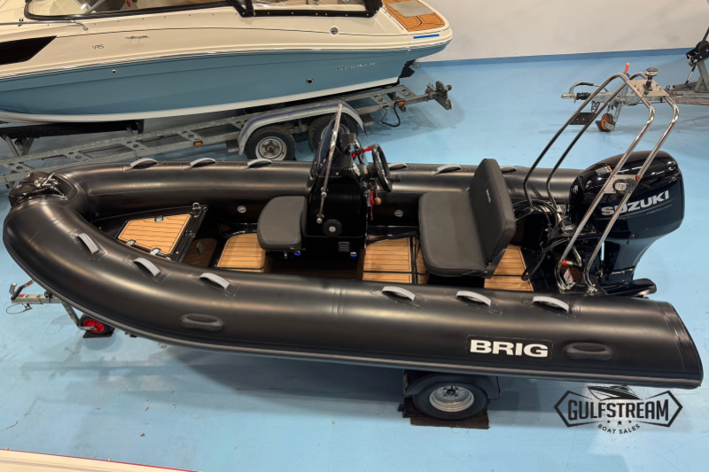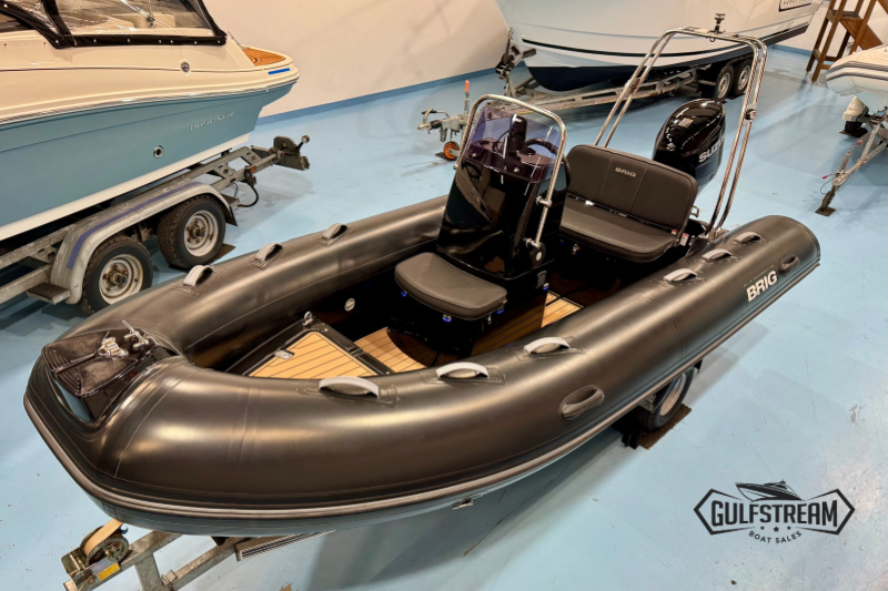 This Brig is a top spec example featuring Soft Teak Decks, Heavy Duty Hypalon tubes (in black), Stainless Steel A-frame, Garmin Striker 4 Fishfinder, Roller Coaster Trailer and All-Over Storage Cover.