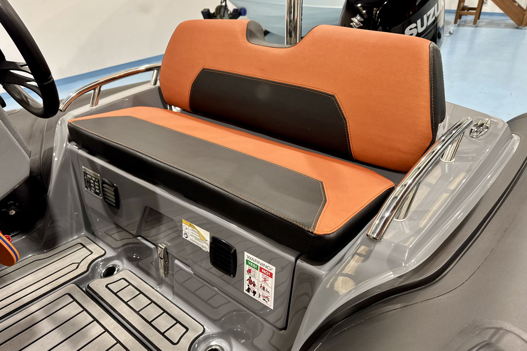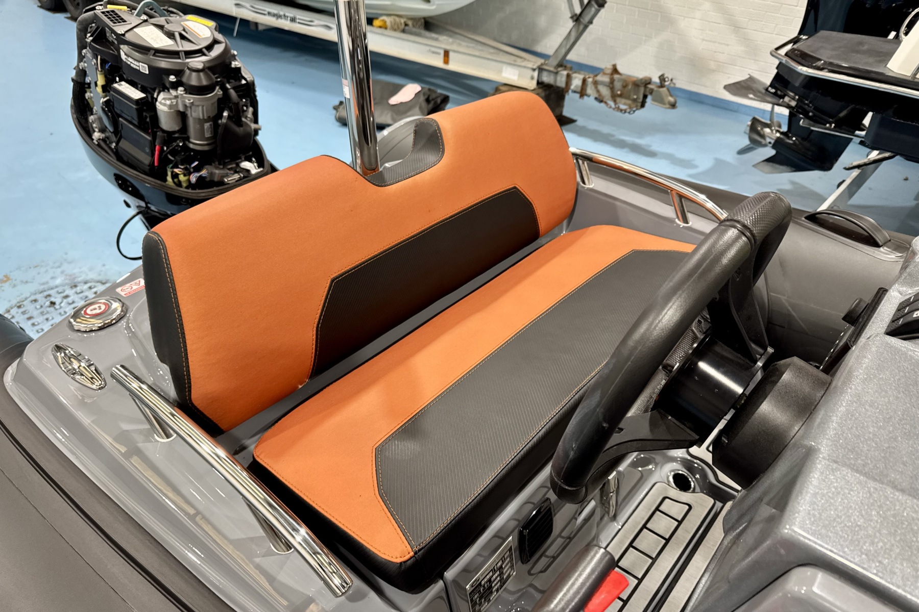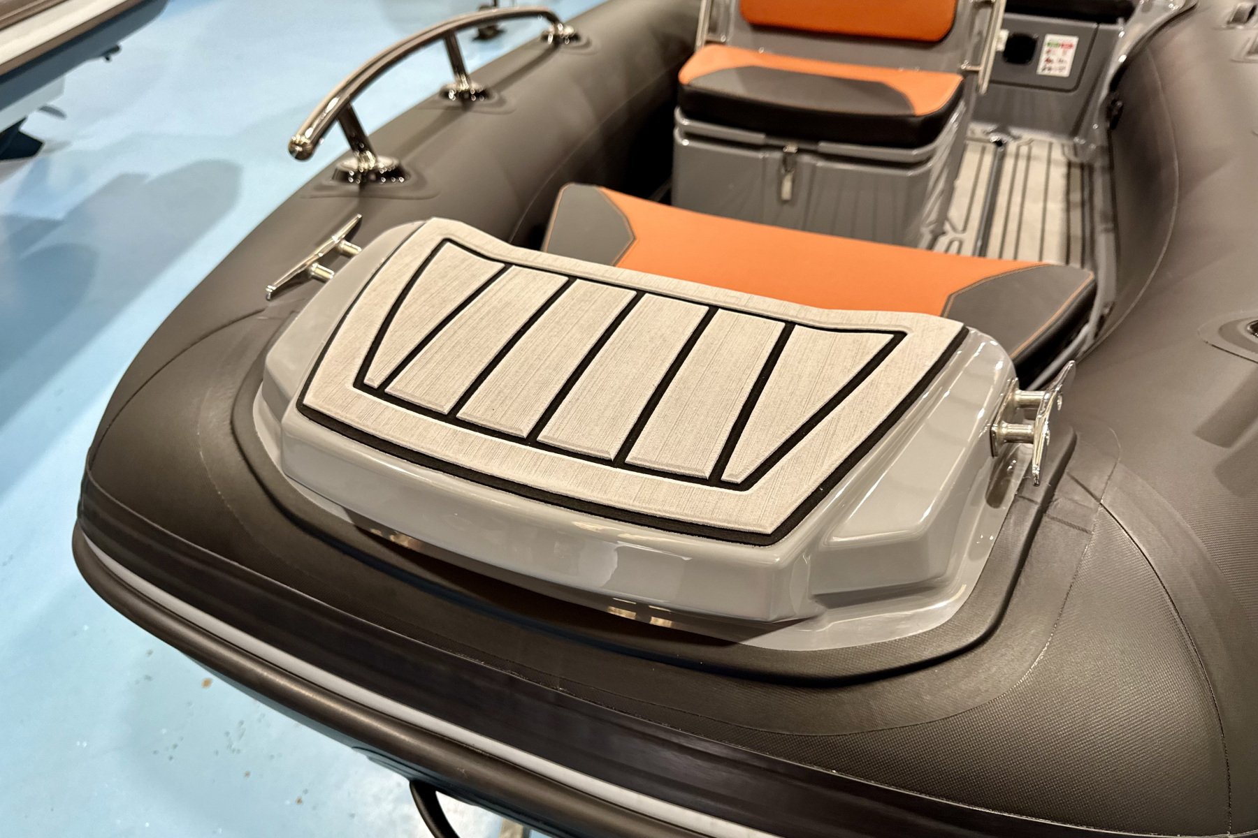 Onboard, the layout is practical and well thought out. You’ve got a comfortable double helm bench with storage, forward bow seating, and useful space throughout for gear. The fit and finish is excellent, with stylish tube colours and smart detailing that give it a premium feel well beyond its size.