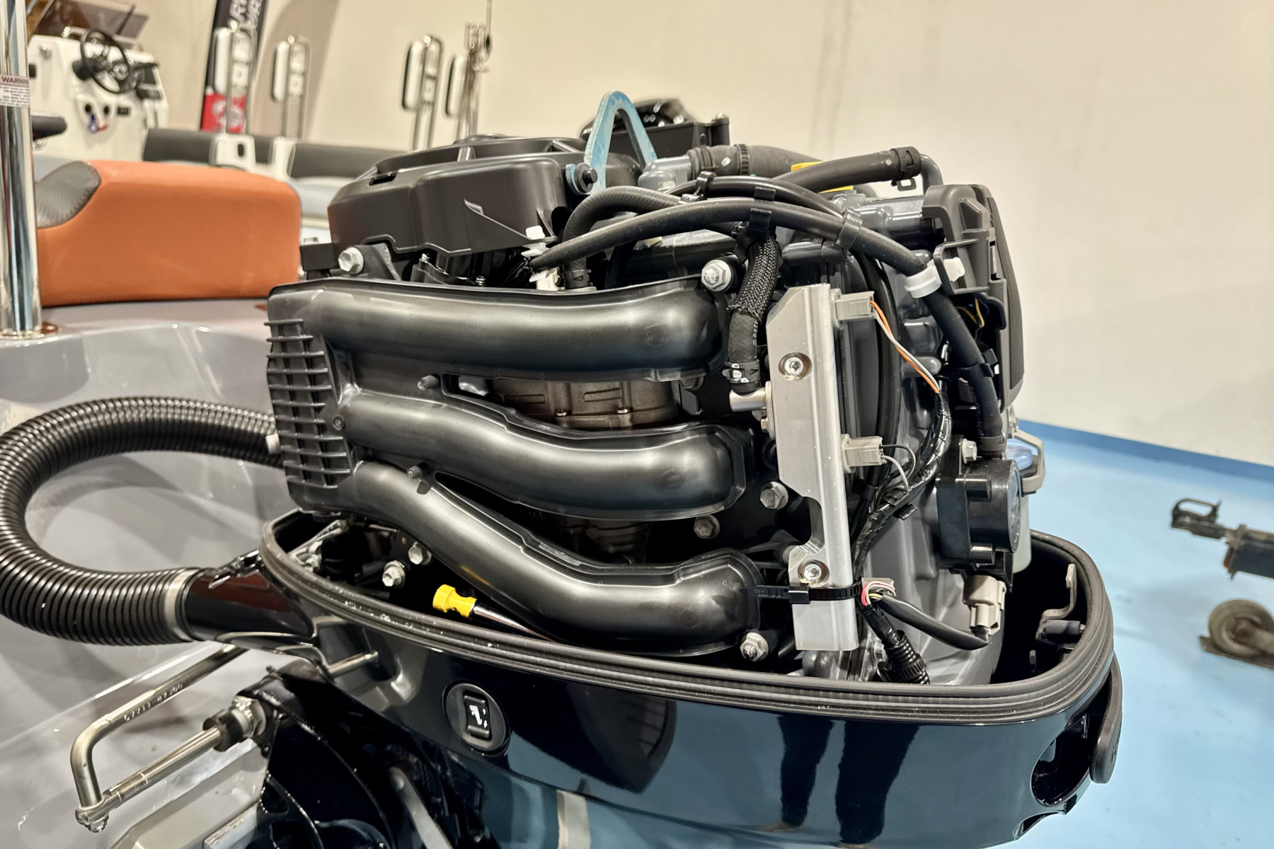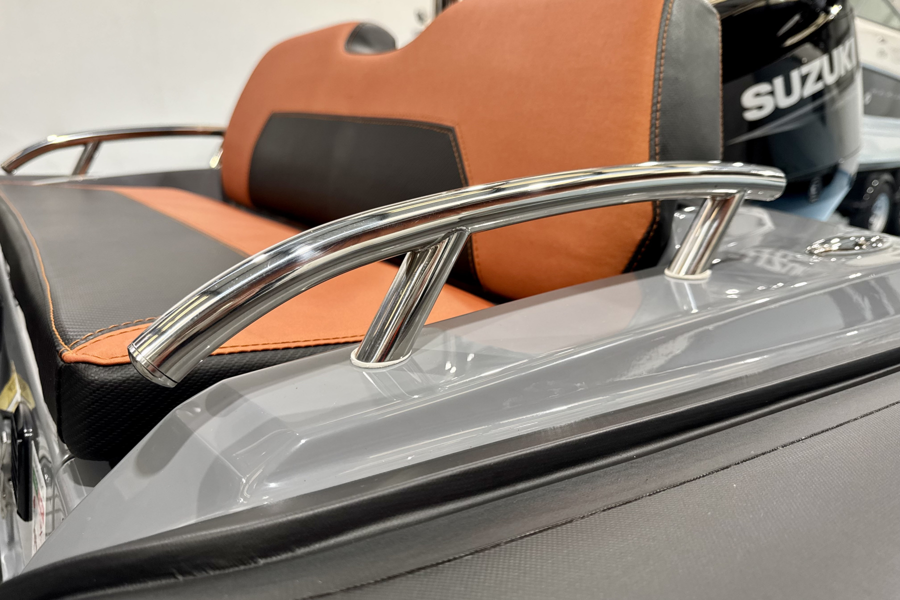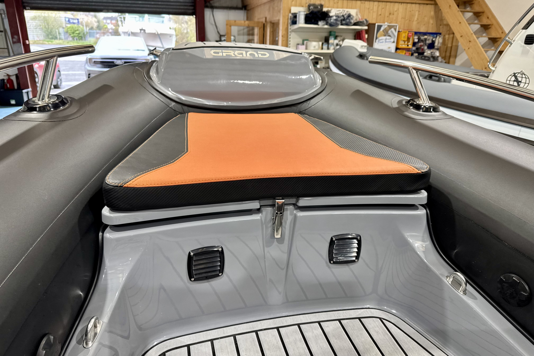 Onboard, the layout is practical and well thought out. You’ve got a comfortable double helm bench with storage, forward bow seating, and useful space throughout for gear. The fit and finish is excellent, with stylish tube colours and smart detailing that give it a premium feel well beyond its size.