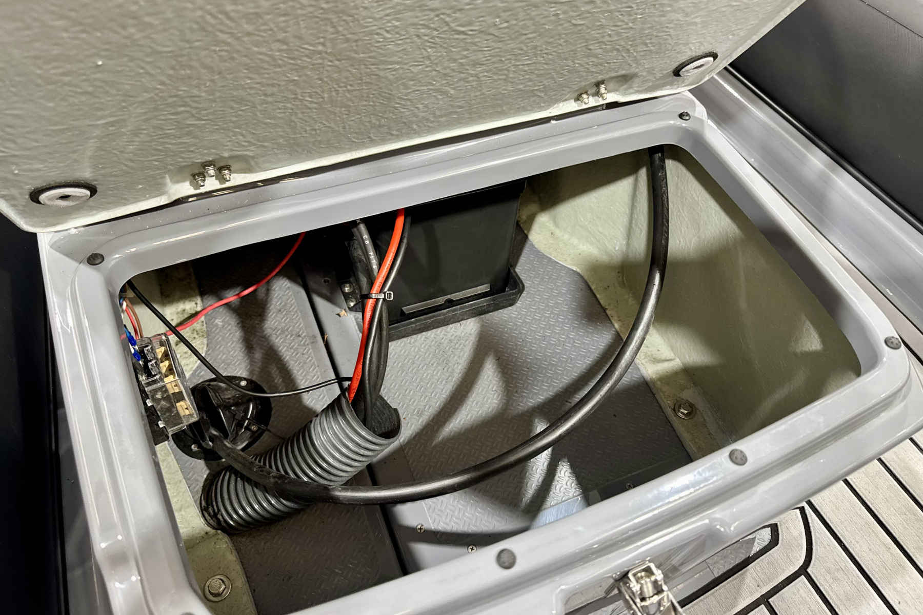 The fibreglass deep-V hull is where this boat really shines. It cuts cleanly through chop, giving you a dry, stable ride, while still feeling agile and fun when you open it up. Paired with the Suzuki 60HP outboard, it’s quick onto the plane, responsive on the helm, and has enough power for towing toys or enjoying a proper blast when conditions allow.