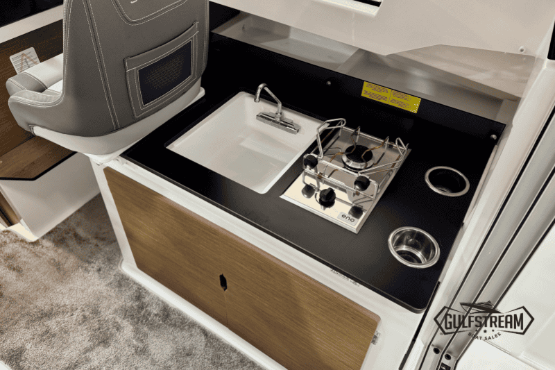 Her deep-v hull gives an assured ride in lumpier conditions and sporty performance. Fitted with the Yamaha 200HP Outboard, she also has the performance to match her versatility. The Yamaha FourStroke Outboard is a super smooth engine, extremely fuel efficient, whisper-quiet at slow speeds and packs plenty of grunt when you need it.