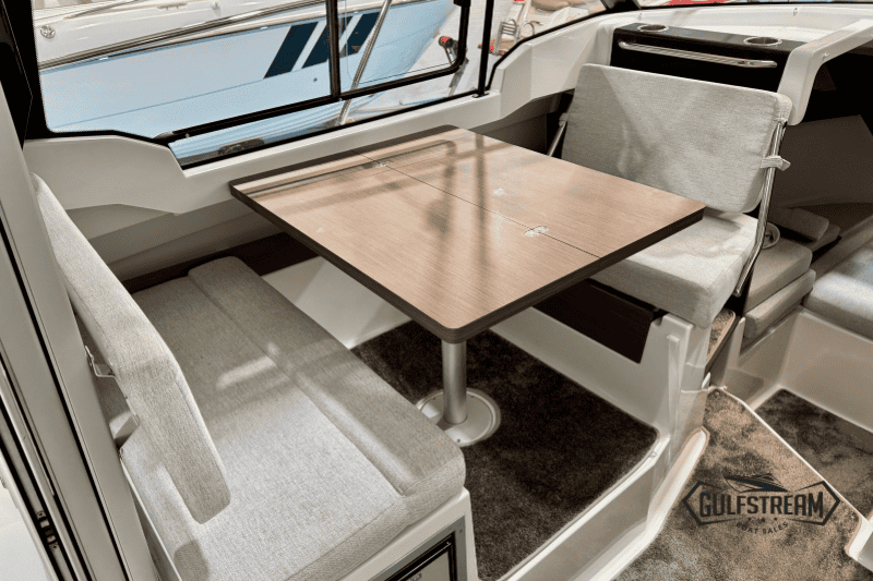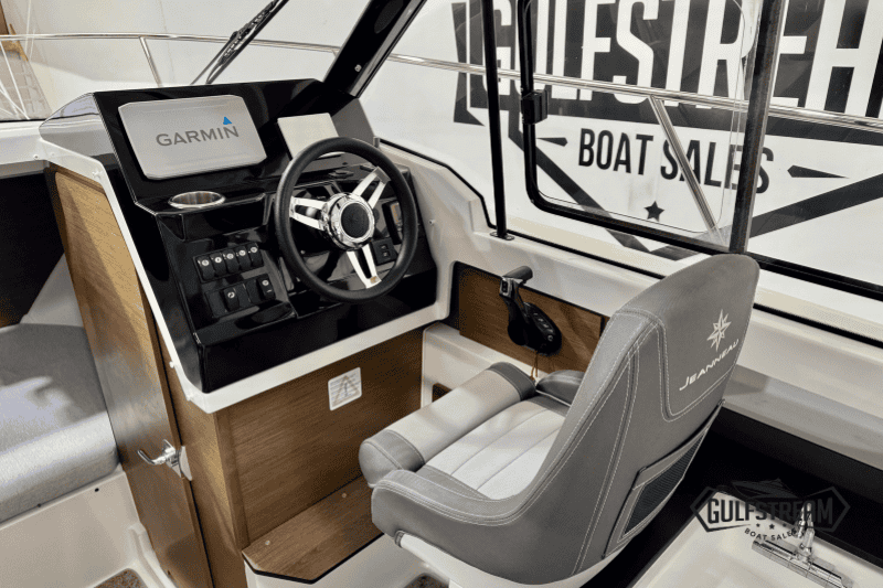 This stunning Jeanneau Merry Fisher 795 is a fantastic family cruiser with 4 berths, galley, enclosed heads compartment and luxurious wrap-around lounger seating in the cockpit – set around a large cockpit table that converts to a sunpad. Put the cockpit seating away and you have a large aft deck to fish from or carry extra gear on. This boat also has the optional extended swim platforms, which make it a joy to swim from.
