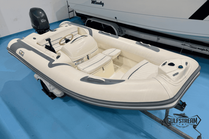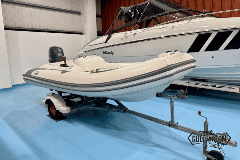 This is a 2007 Avon Seasport 400 DL RIB, fitted with a Yamaha 50HP FourStroke Outboard. It has only 260 hours on the clock and is in great condition for the year. It comes complete with a single axle roller coaster road trailer for making transport and launching simple.