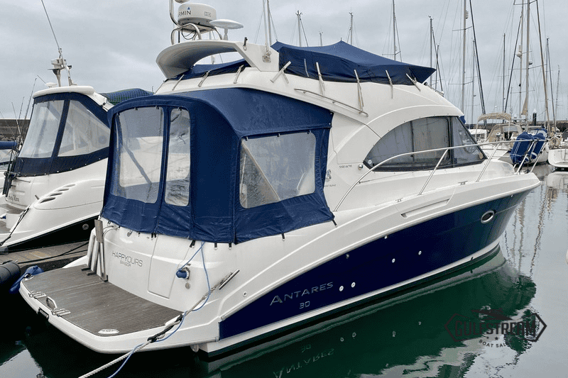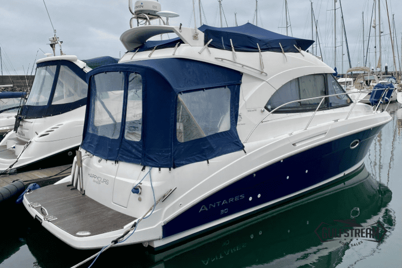 The Beneteau Antares 30 Flybridge is a beautifully balanced cruising boat that combines Beneteau’s trademark modern styling with solid seakeeping and a touch of genuine French flair. With her clean lines, large windows, and a bright, practical interior, she’s every inch the contemporary family cruiser — but underneath the smart looks lies a capable and confidence-inspiring sea boat.