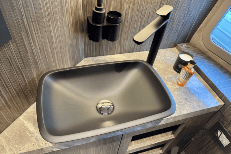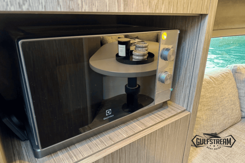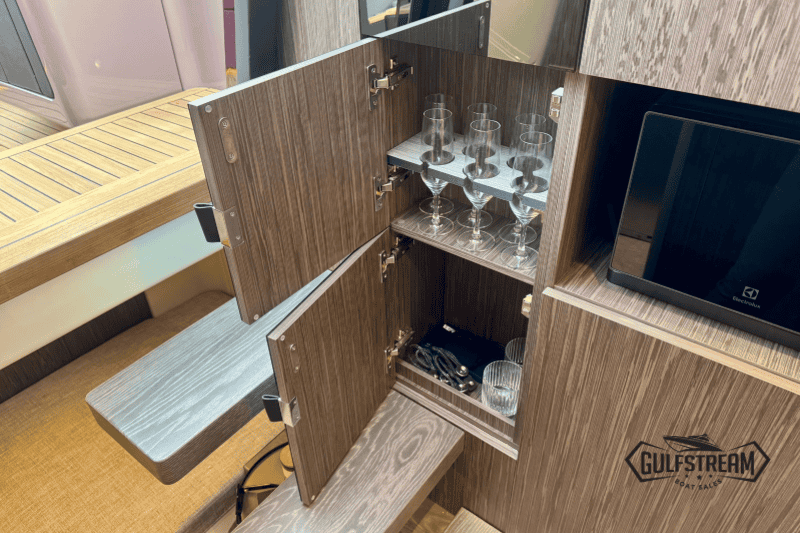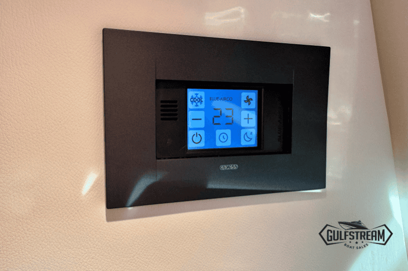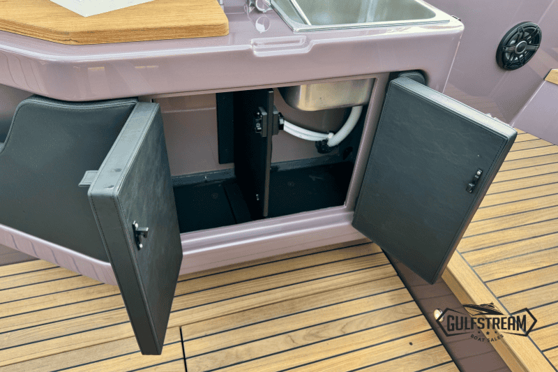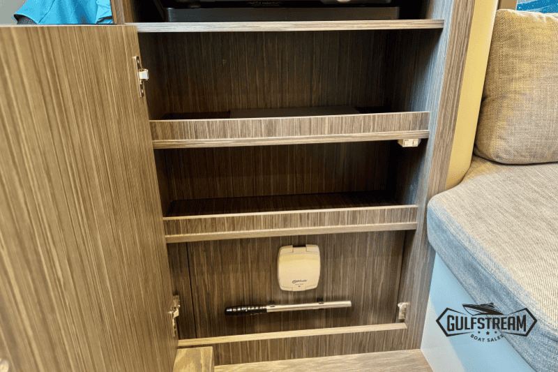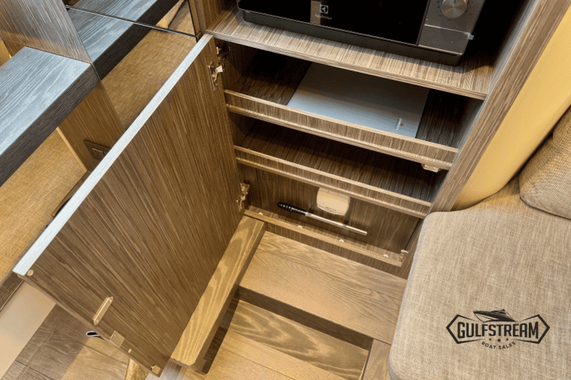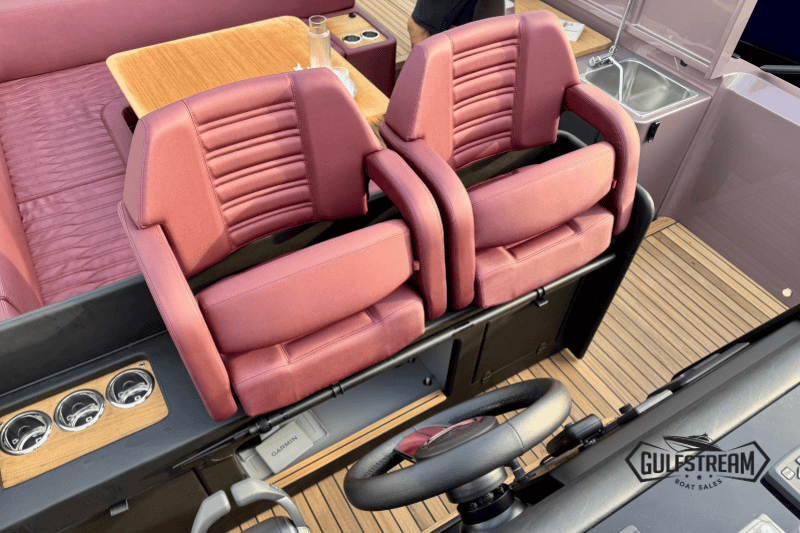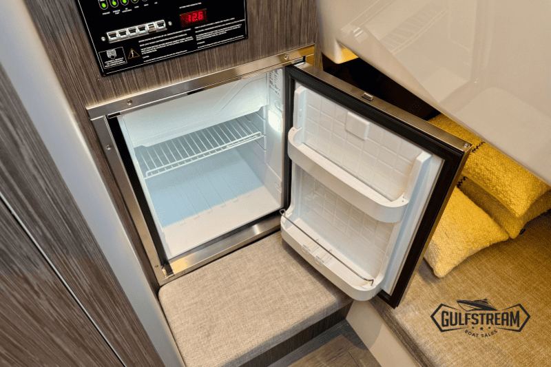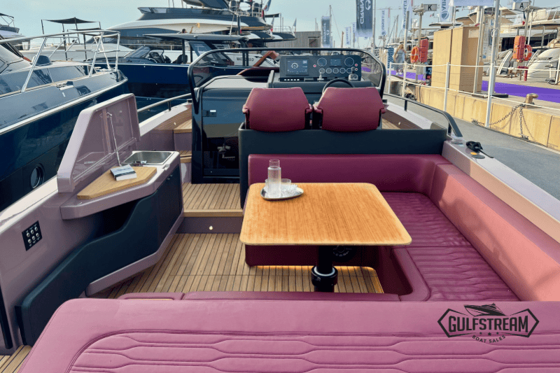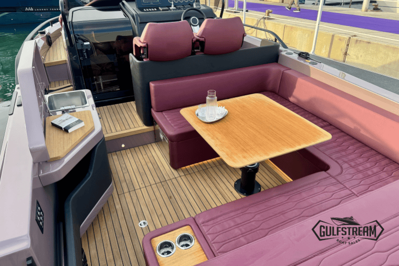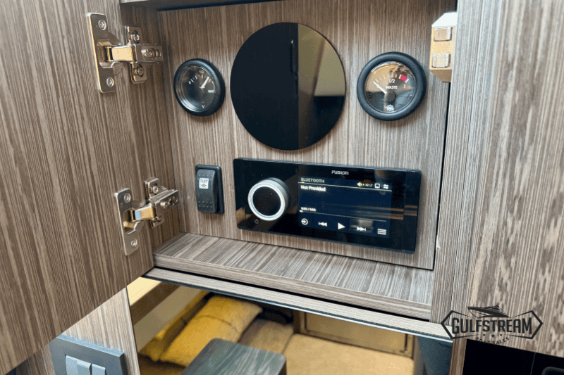 Life on board is easy and self-sufficient thanks to thoughtful detailing throughout. There’s a 35-litre cockpit fridge for drinks on deck, complemented by a second 90-litre fridge in the cabin. Entertainment is taken care of with a powerful audio system, ensuring the perfect soundtrack to your time afloat.