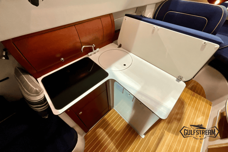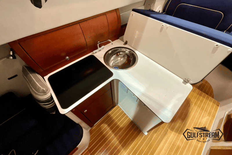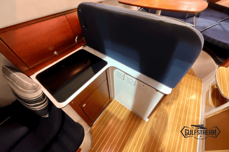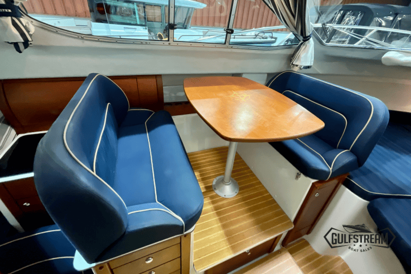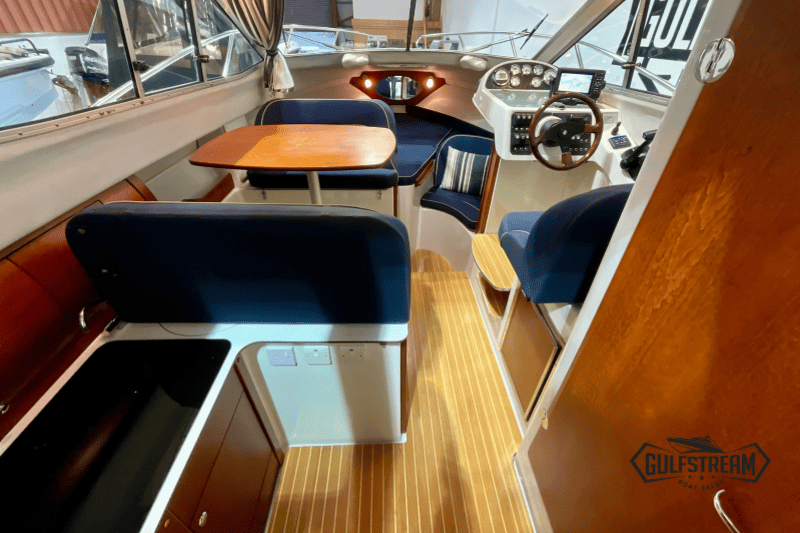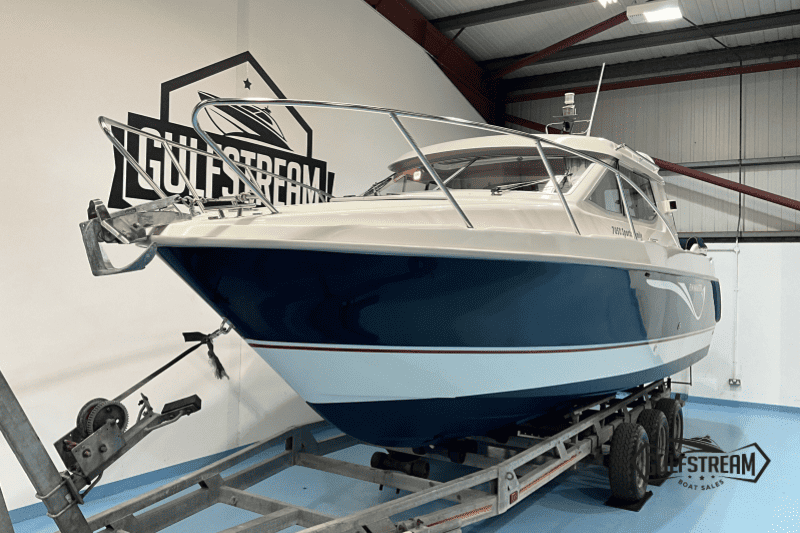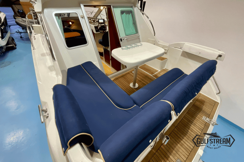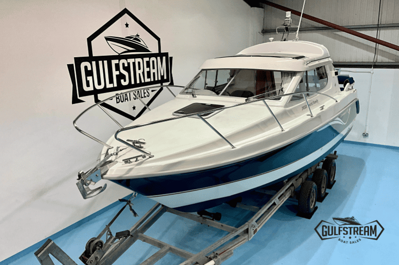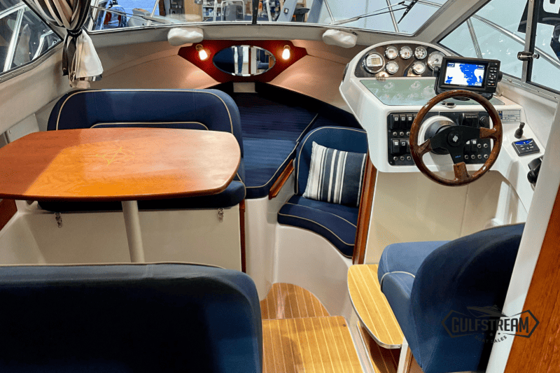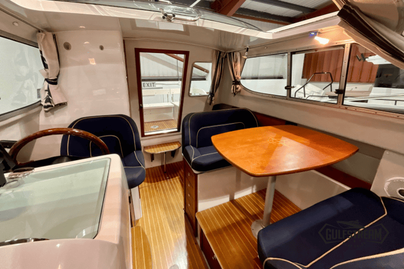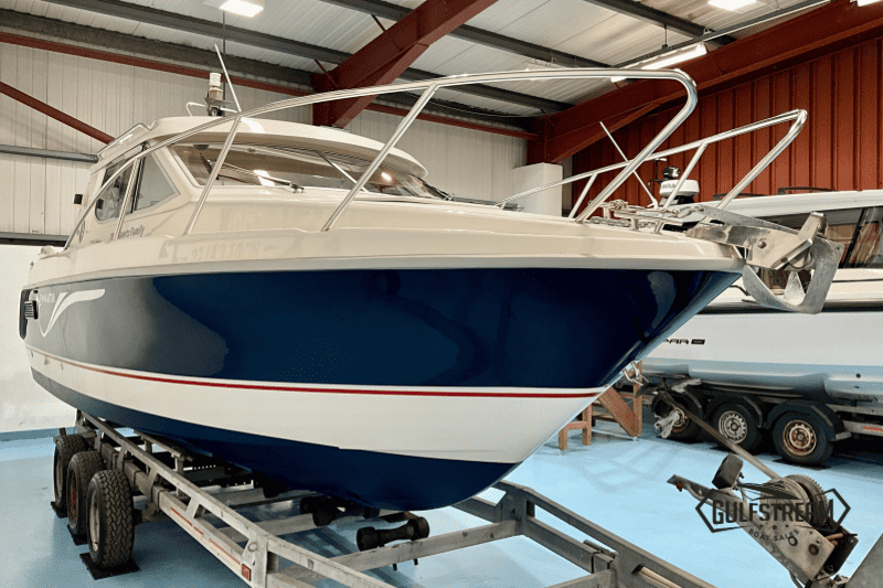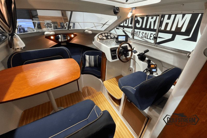 Sporting a fully enclosed hard top cabin with a comfortable dinette, a usable galley, a separate heads compartment, 5 berths and excellent electronics package, this is a genuine weekender that is very well suited to our Northern European climate.