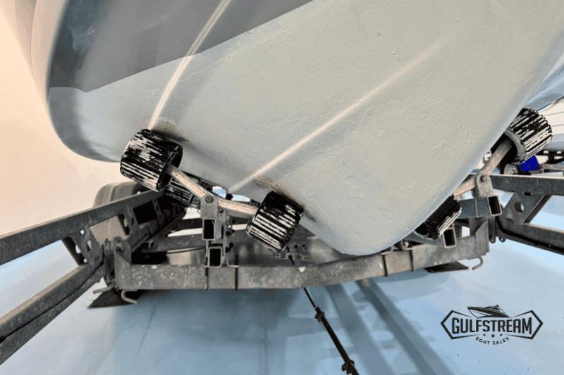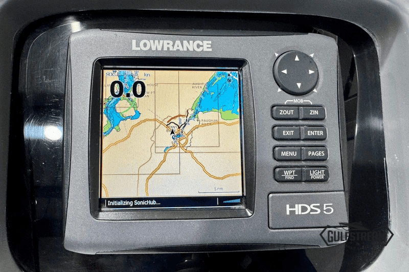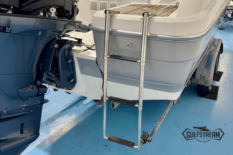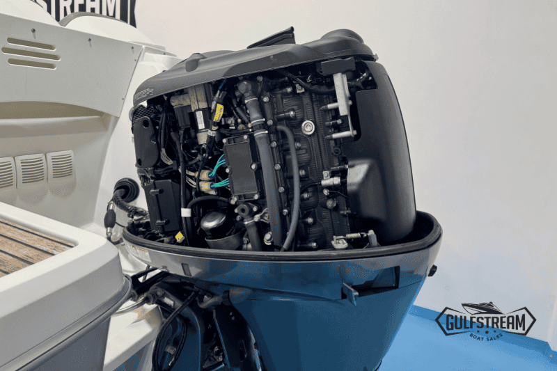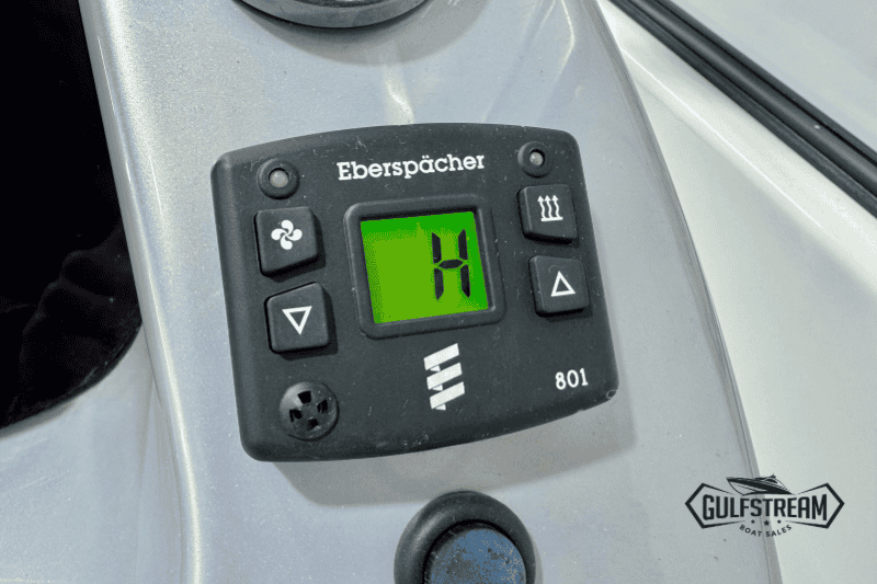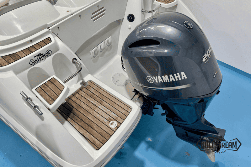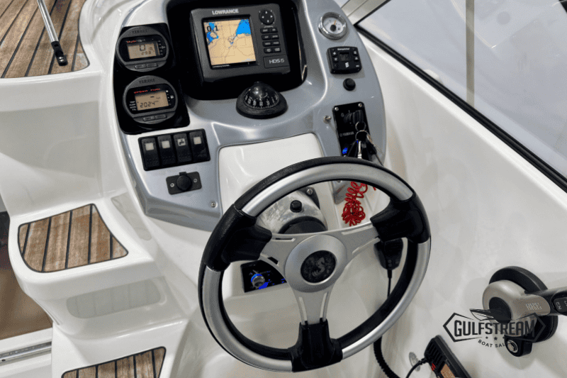 …As well as having the all-important 200HP Yamaha, she also boasts a Lowrance HDS5 Chart Plotter, ICOM VHF Radio, Full Camper Covers, Cockpit Carpets, Teak Foredeck and Swim Platforms, a Twin Axle Indespension Trailer, Cockpit Wetbar and even an Eberspacher heating system.