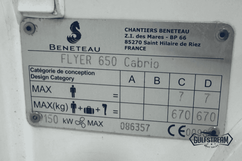 The boat has been well cared for and regularly serviced and she has to be one of the best spec’d examples around of the Flyer 650 Cabrio (or her sister boat from Jeanneau – the Cap Camarat 6.5 DC)…