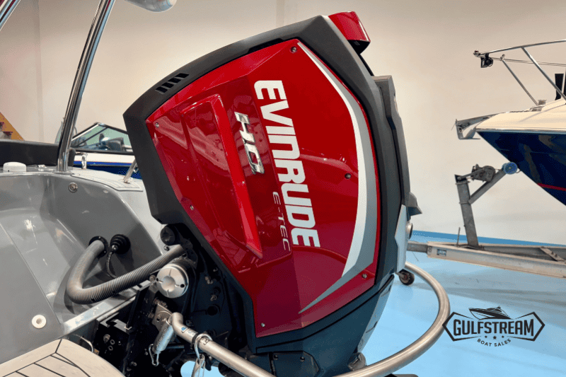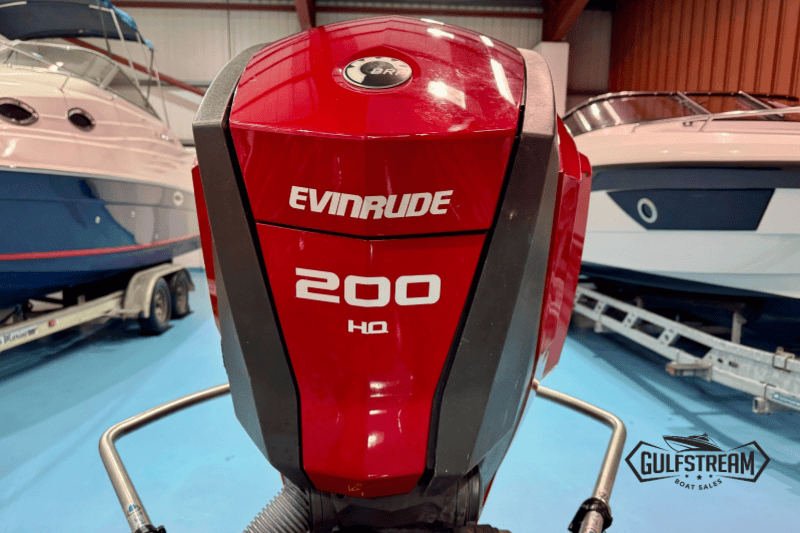 Fitted with the maximum rated horsepower – the light and powerful Evinrude E-TEC 200HP – this RIB offers serious performance, whether you’re pulling skiers, towing inflatables, or blasting through rough stuff. The deep-V hull handles well and the hydraulic steering ensures light, responsive control. It planes effortlessly, cuts smoothly through waves, and inspires confidence even in rougher conditions—ideal for a sporty family RIB.