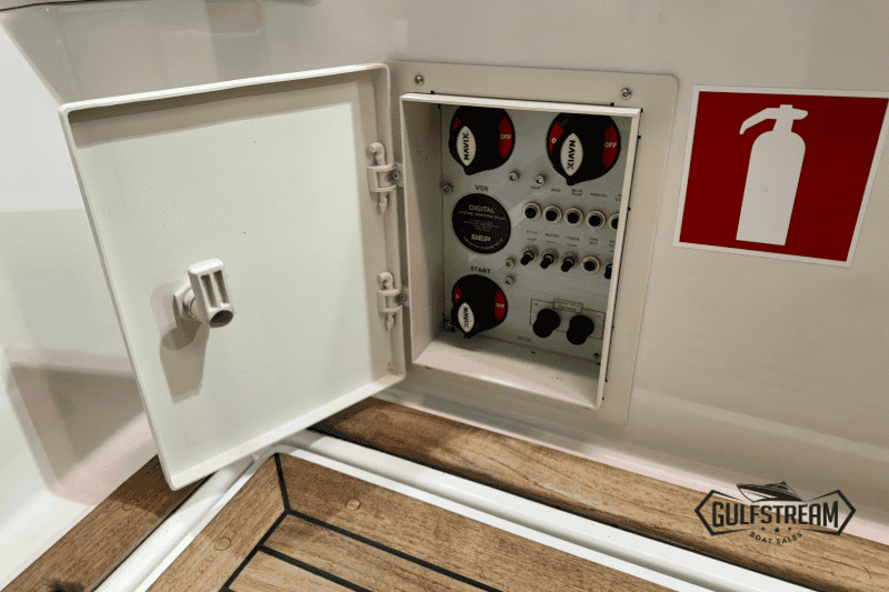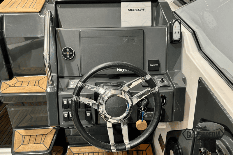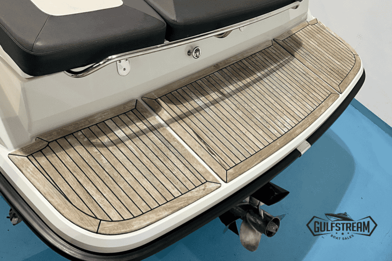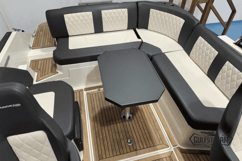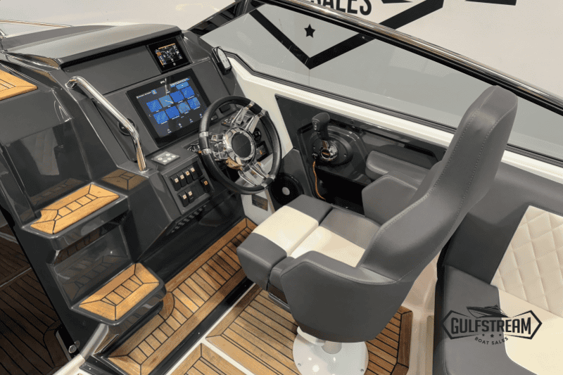 This 2021 model has only 101 hours on the clock and is in like-new condition. It is available for immediate delivery to your waterway of choice. As this example is fitted with the upgraded Mercruiser 6.2L 350HP Bravo SeaCore Power Unit, it’s equally at home on Salt Water or Fresh. This boat also boats the extra cockpit seating (complete with drawer fridge unit), so it feels really spacious on deck and is perfect for entertaining larger groups on the water.