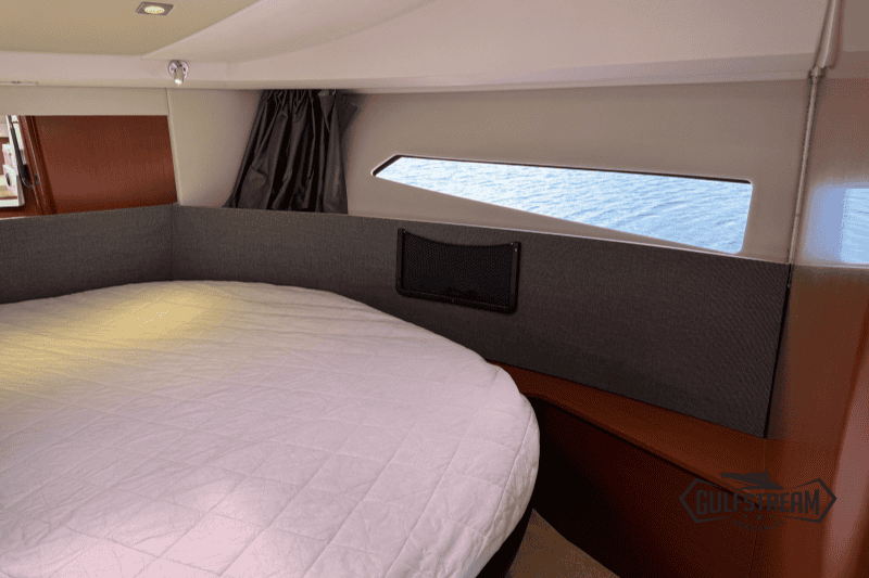 The NC9’s layout is exceptionally well thought out for both entertaining and extended stays on board. With 2 private cabins, a spacious heads compartment, and a convertible dinette in the saloon, this boat can comfortably sleep up to six people.
