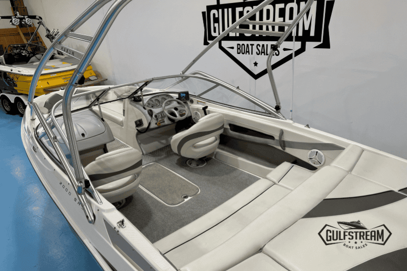 And because she has a proper deep-v hull (with 20 degree deadrise at the transom), this boat isn’t limited to just pulling skiers and wakeboarders on the lake. She is built to handle the choppy conditions around the coast or on larger bodies of inland water. So if your run to the local skiing spot involves tackling some rough stuff on the way there and back, then you need a boat like this Maxum SR3 2000 that’s happy to do double duty as a sea-boat and a tow sports-boat, all in one!