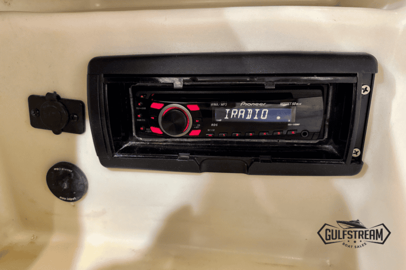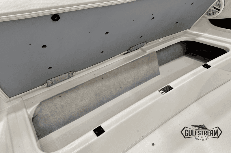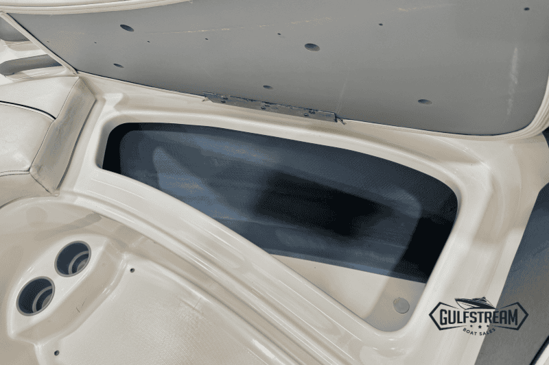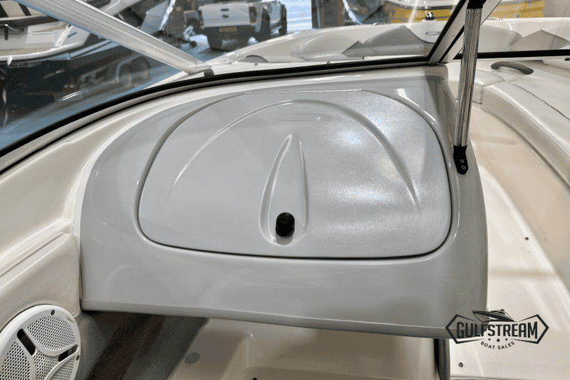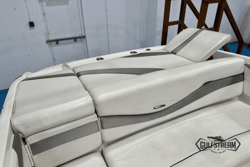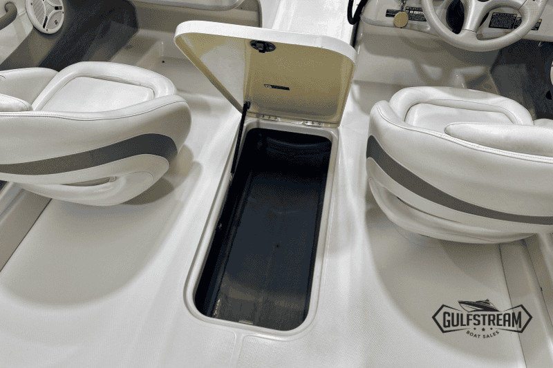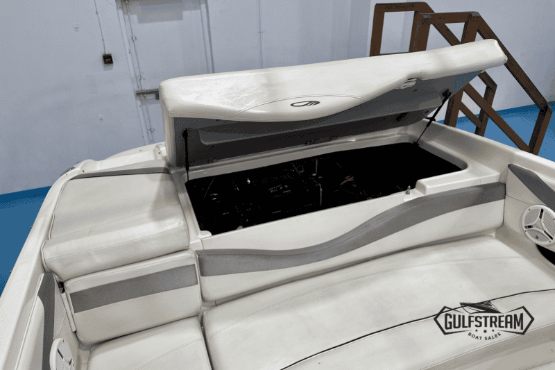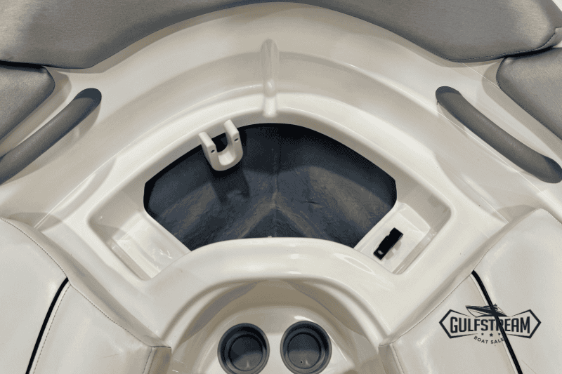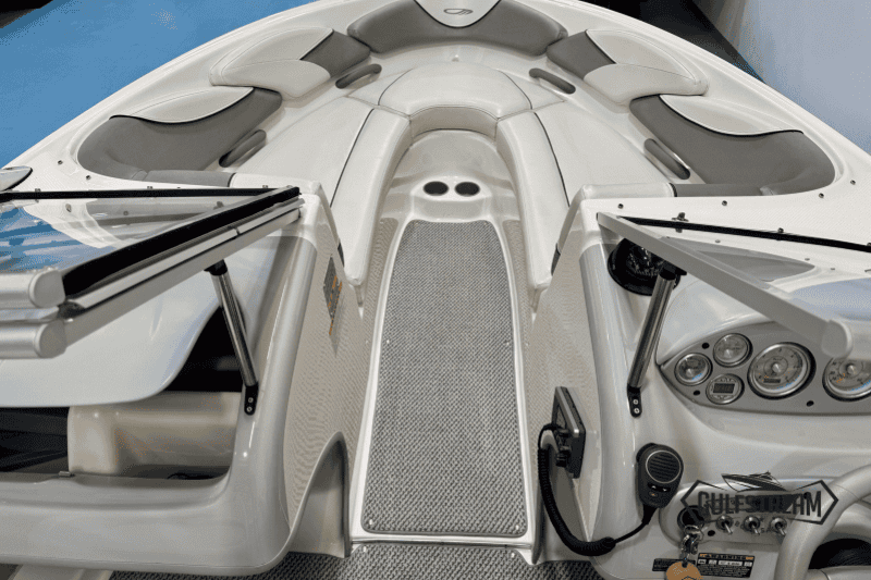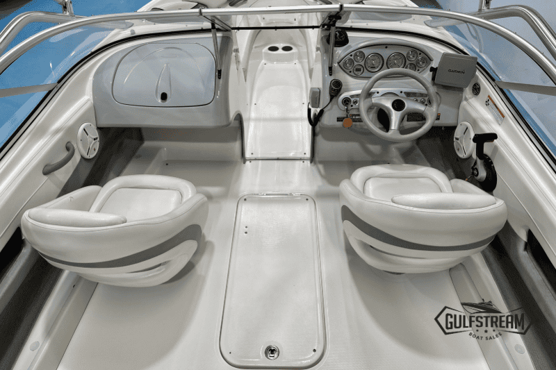 With it’s wide-band black hull stripe, beautiful upholstery, fibreglass floor, stylish factory wakeboard tower, and stainless steel pop-up cleats and hardware, this boat looks and feels top quality.