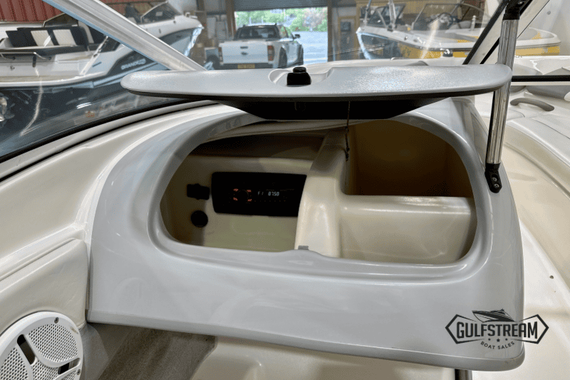 There’s lots of features on this boat that set it apart from even much younger competition and make it a joy to own; including the walk-through transom, aft sunlounger (with fold-up backrest), transom storage locker (with rumble seat on top), extended swim platform, spacious bow area, chartplotter & vhf radio, the list goes on…