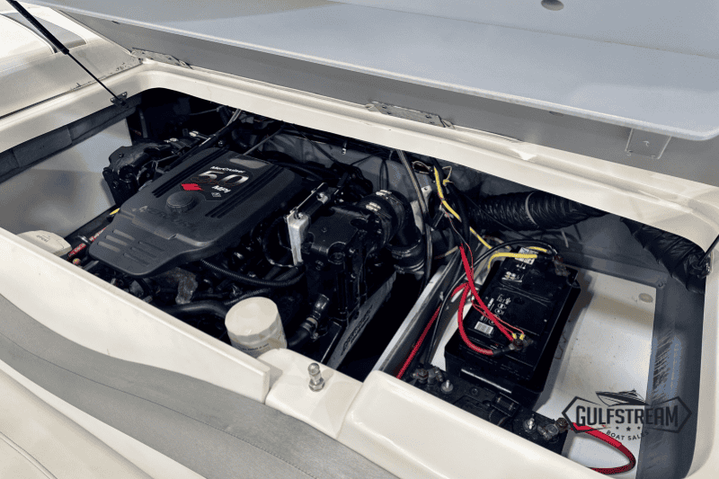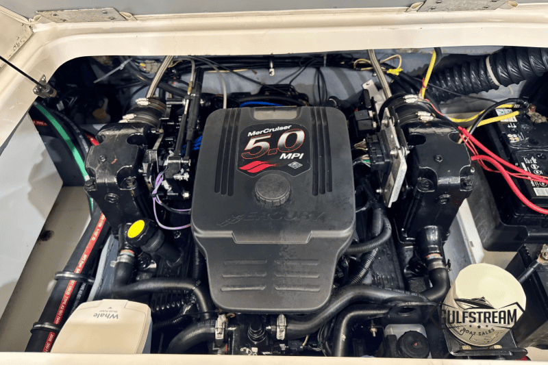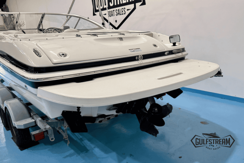 A Factory Wakeboard Edition, this example sports the factory wakeboard tower, walk-through transom, integrated convertible top and the extended swim platform. With the 5.0L MPI V8 motor delivering 260HP this boat also has the performance to match its looks..