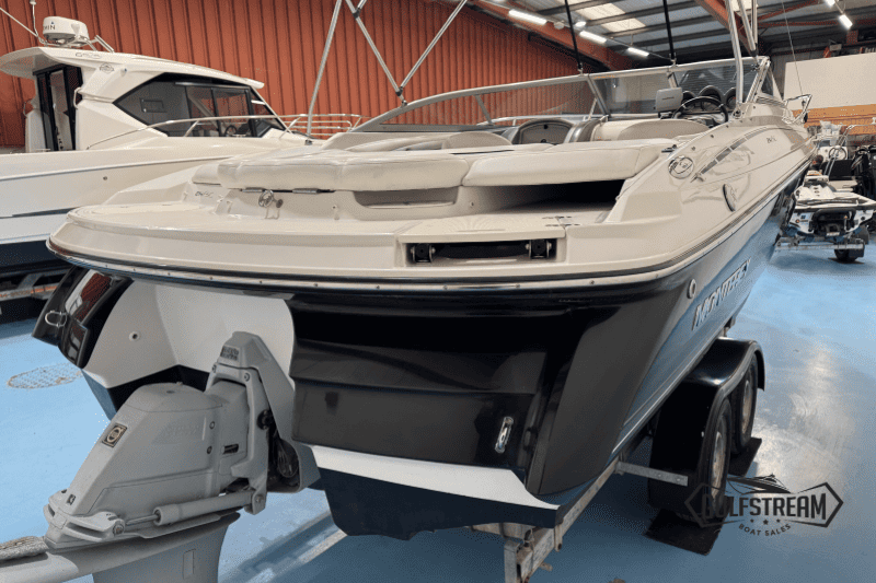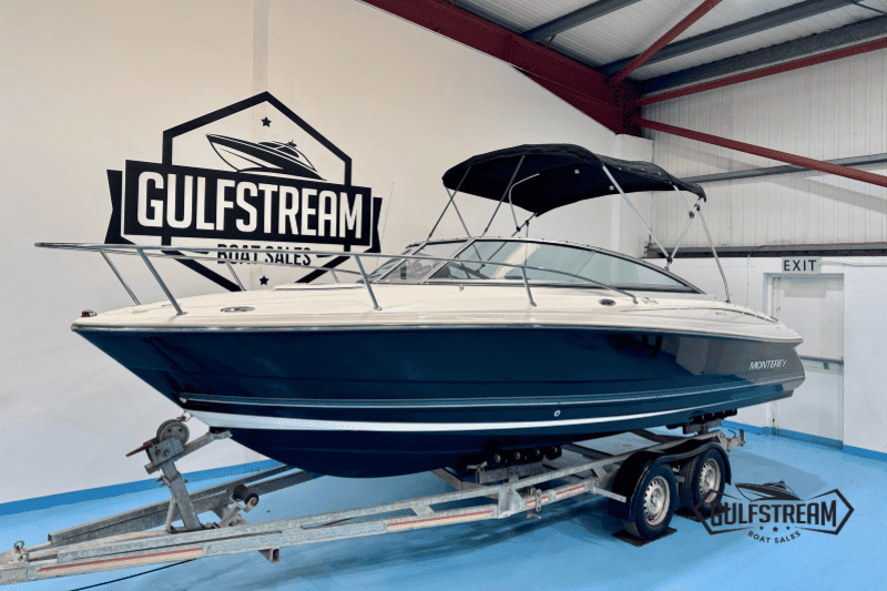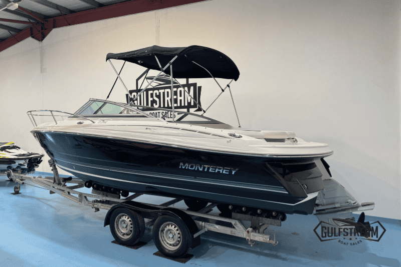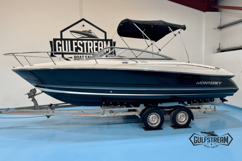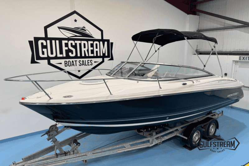 Monterey boats are a cut above the usual US sportboats in terms of build quality and fit and finish. This Monterey 214 FSC is a high quality boat with lots of luxurious touches, like the walk-through transom (with in-fill cushions), stainless steel pop-up cleats, high quality upholstery and beautiful gel coat. It’s a class act and well worth a look if you’re in the market for 21-23 foot cuddy.