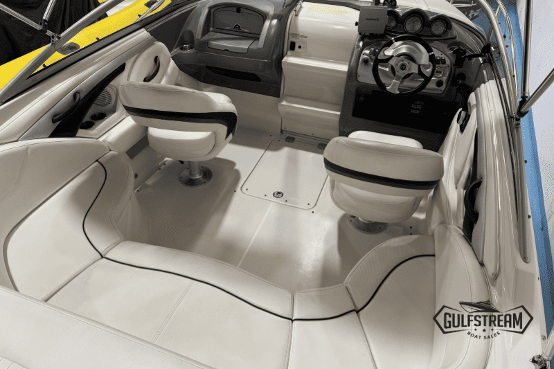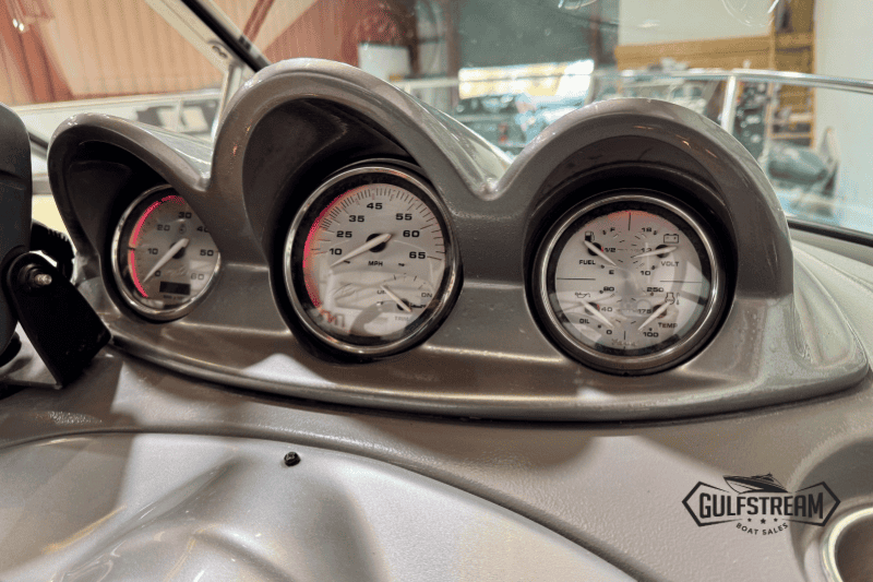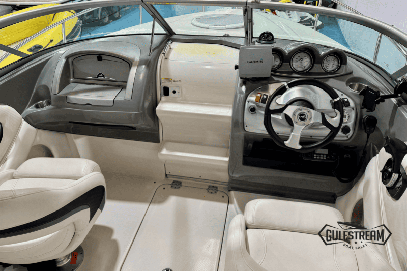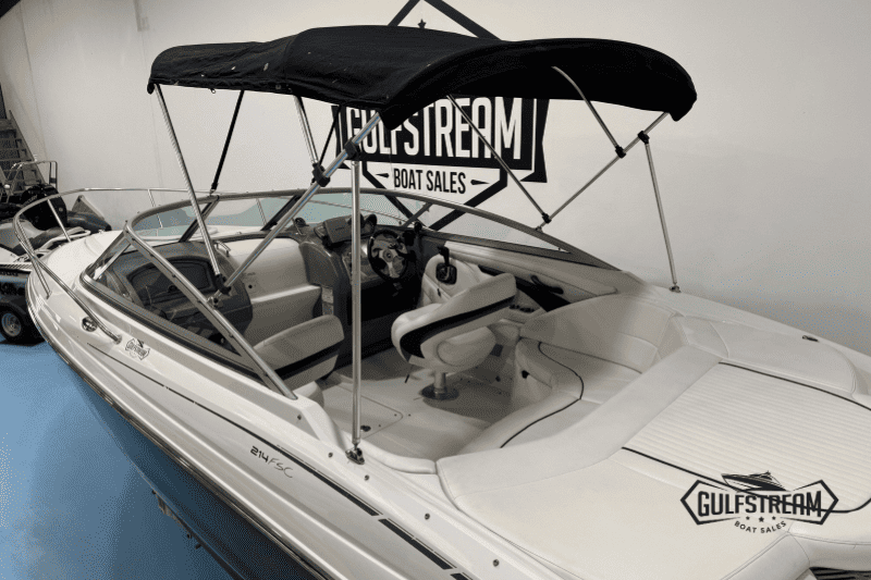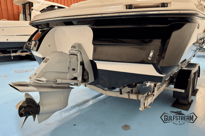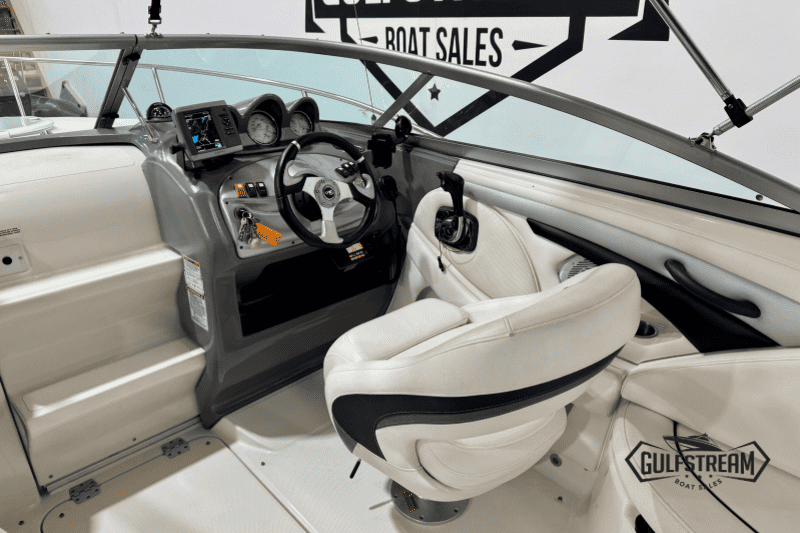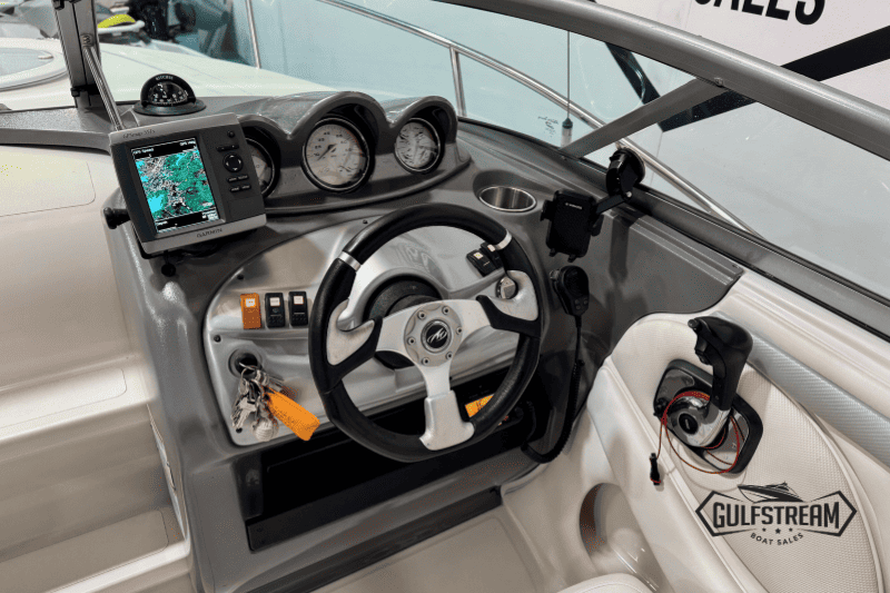 Complete with a Garmin chart plotter, VHF Radio, digital depth sounder, bimini top and full set of factory camper covers (plus tonneau cover), and SBS Roller Coaster trailer, this boat is well equipped and ready to go to the water.