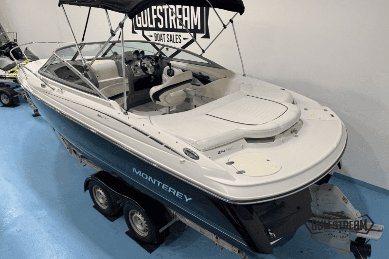 This Monterey 214 FSC Cuddy has only 268 hrs on the clock. It has seen mostly fresh water use and is in lovely condition throughout.