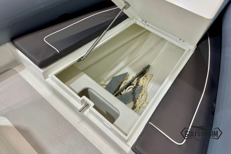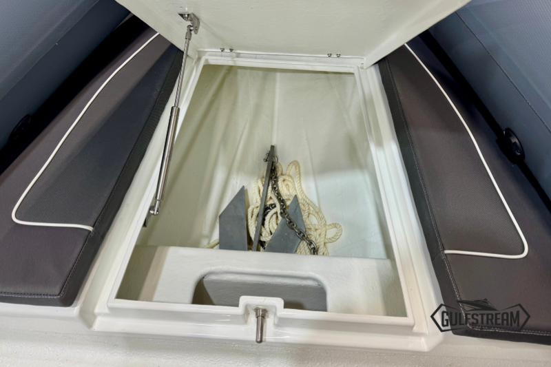 Under the deck is a 200L, 4mm aluminium fuel tank. It has a large two section anchor locker, with ample storage in the console and seating. Aft is a deep bilge pump well.