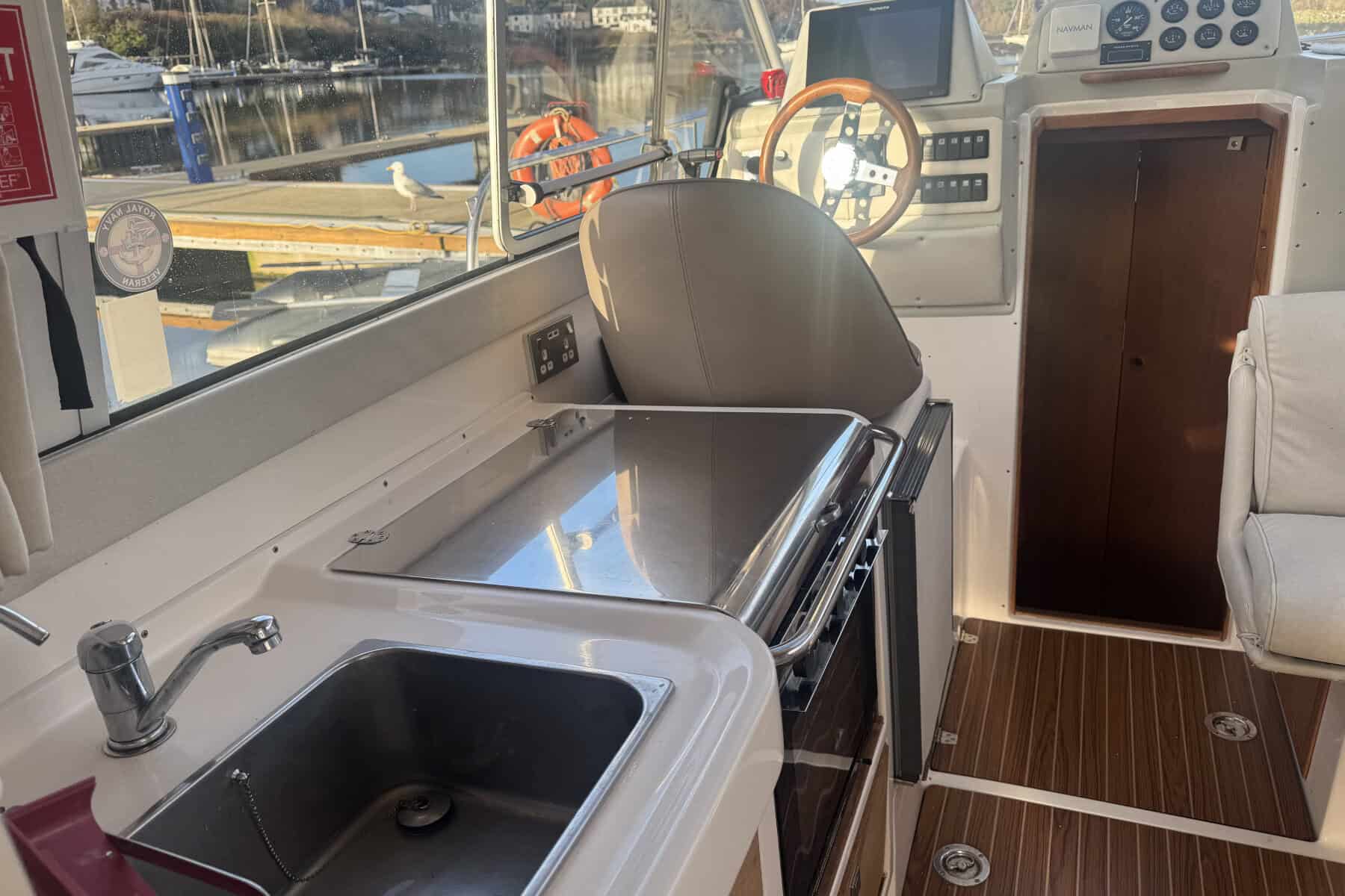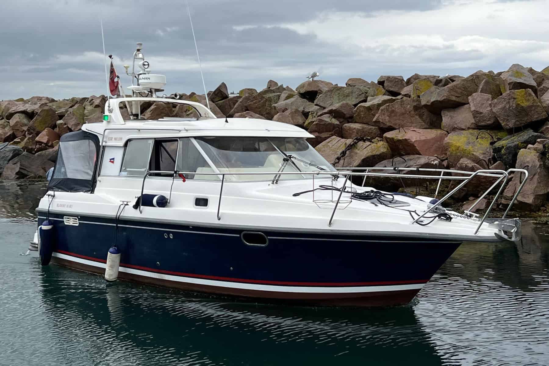 Sporting Nimbus’ signature fully enclosed hard-top wheelhouse, she offers a bright and comfortable saloon with panoramic visibility, a well-appointed galley, a private forward cabin, separate heads compartment, and generous sleeping accommodation for extended weekends aboard. The clever semi-displacement hull provides a reassuring, stable ride, perfectly suited to Northern European conditions.