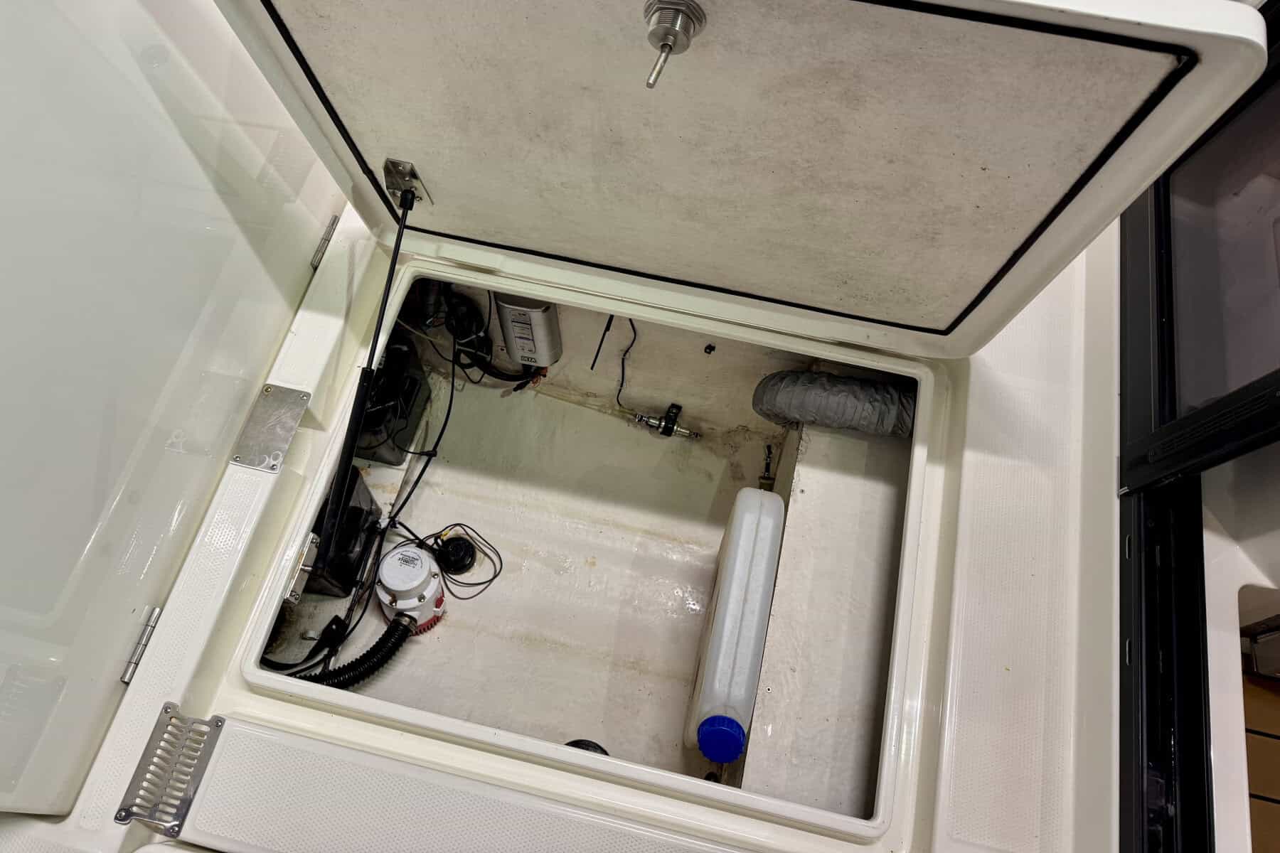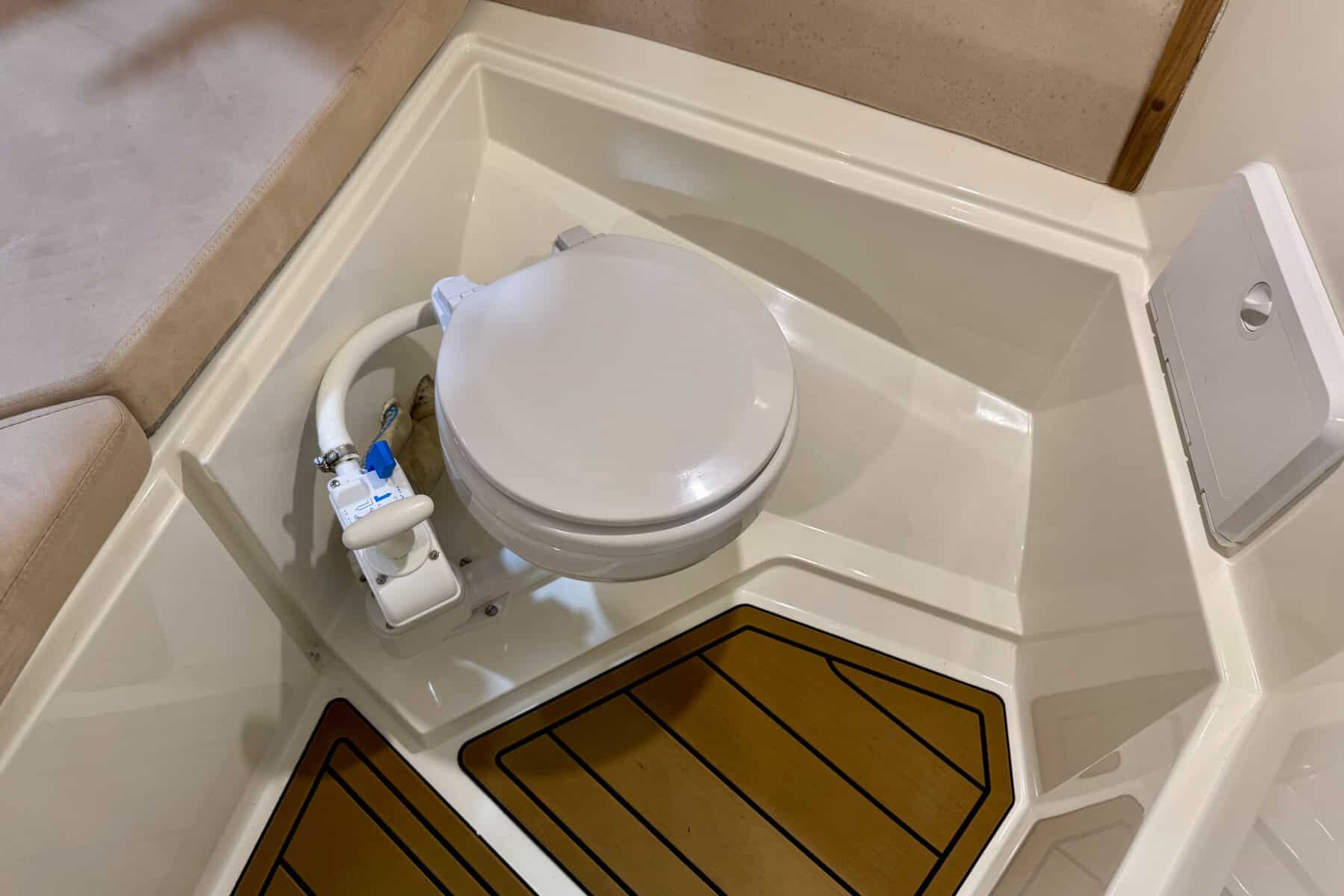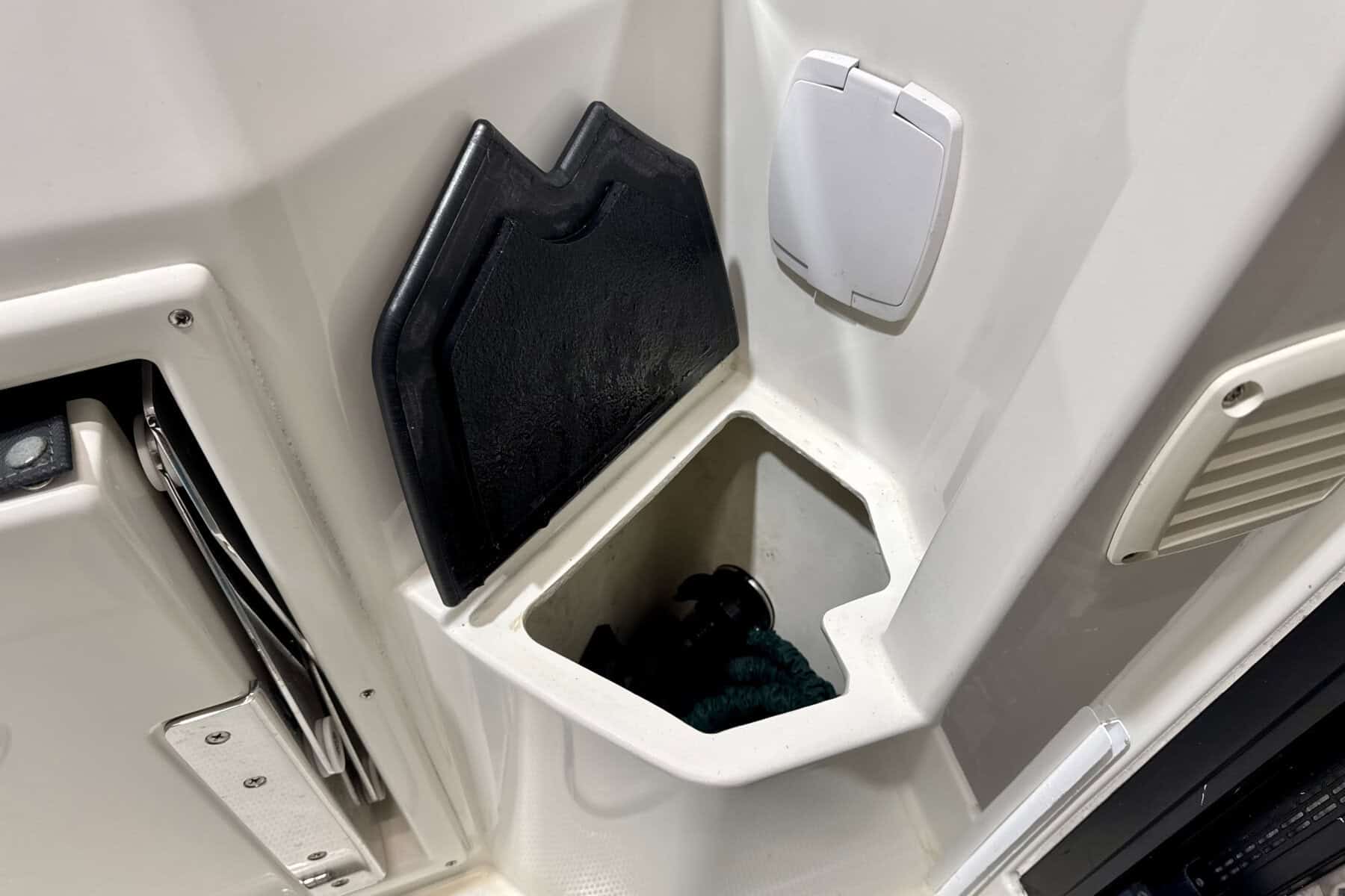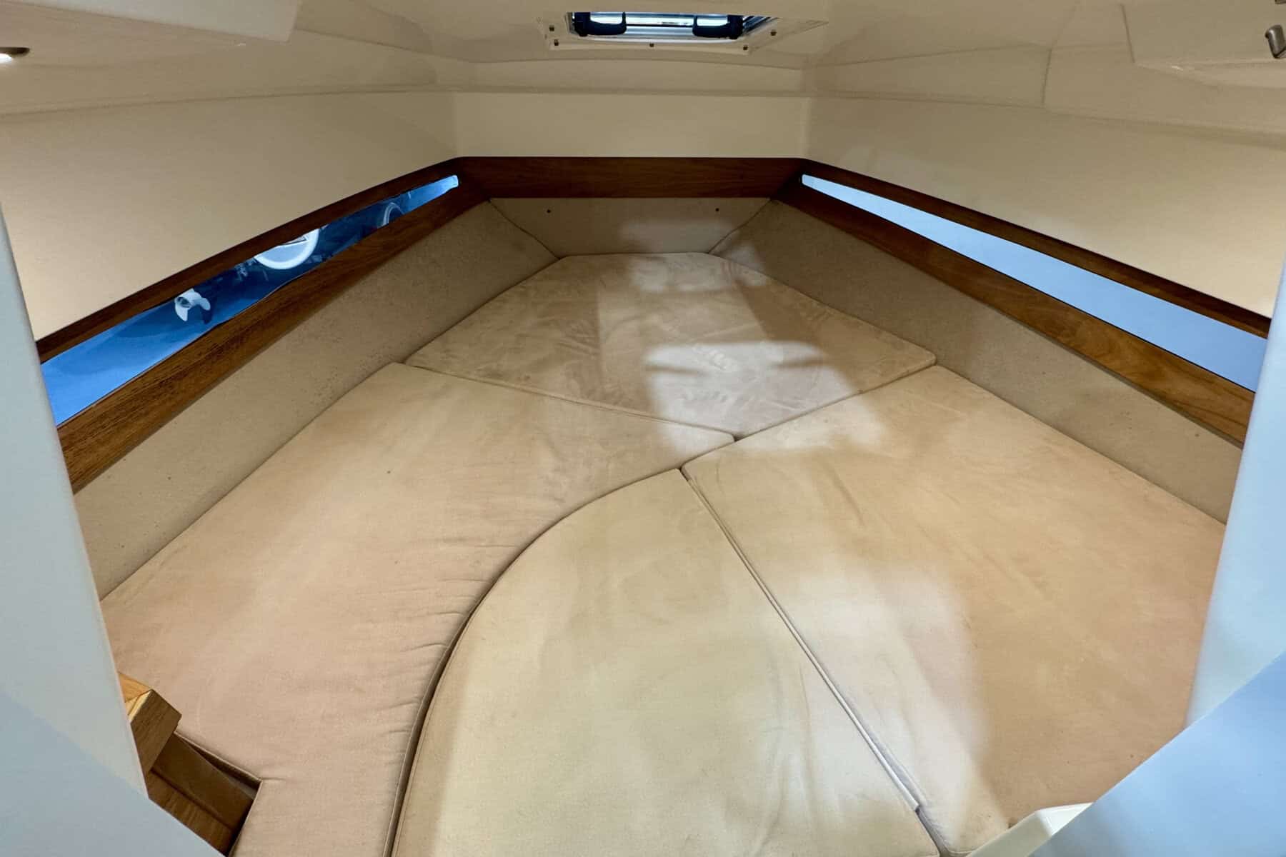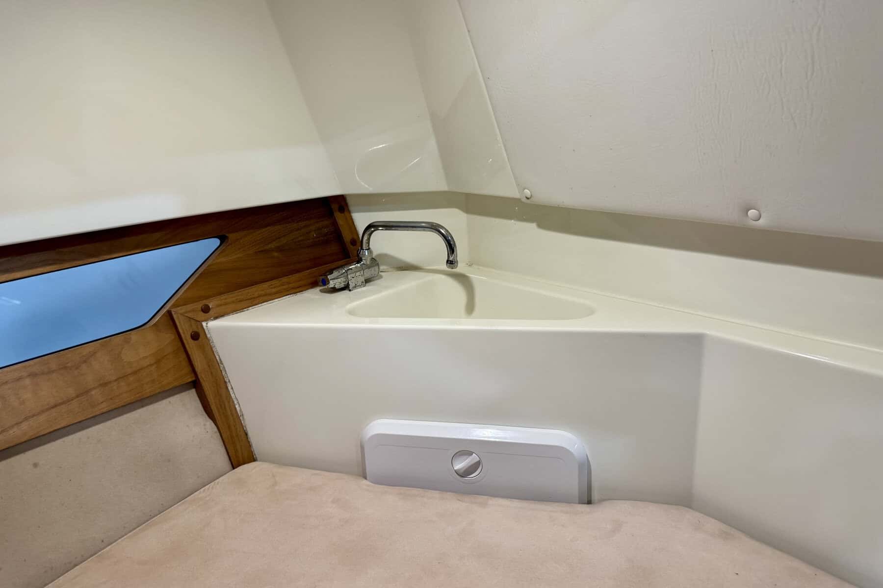 Below decks, the Parker C75 continues to impress with intelligent use of space. The cabin is bright and welcoming, with a comfortable forward berth, practical storage solutions, a manual flush toilet and small sink. It’s a compact but very usable interior, ideal for weekends away or overnight coastal adventures.