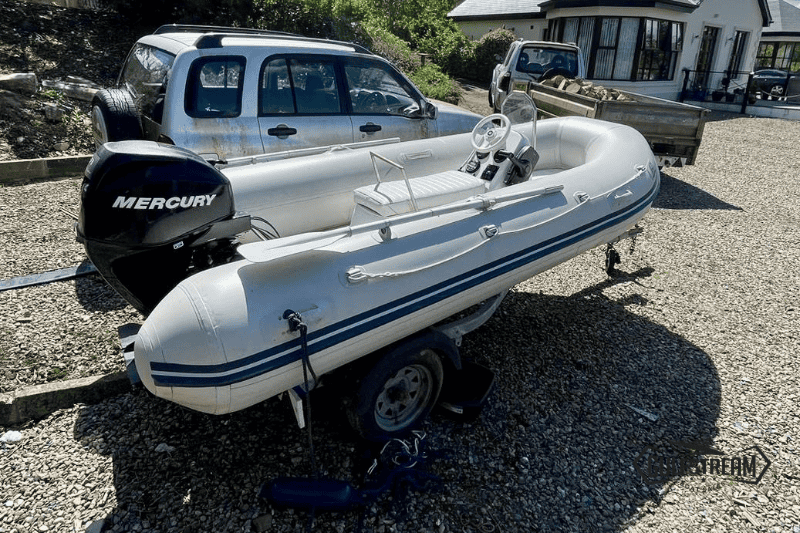 The boat is a 2008 Plastimo 3.5m RIB with a centre console & remote controls. It is fitted with an electric start Mercury 25HP EFI FourStroke Outboard in perfect condition, Bluetooth Stereo and an Indespension Bunked Road Trailer.