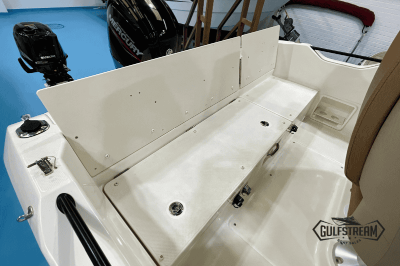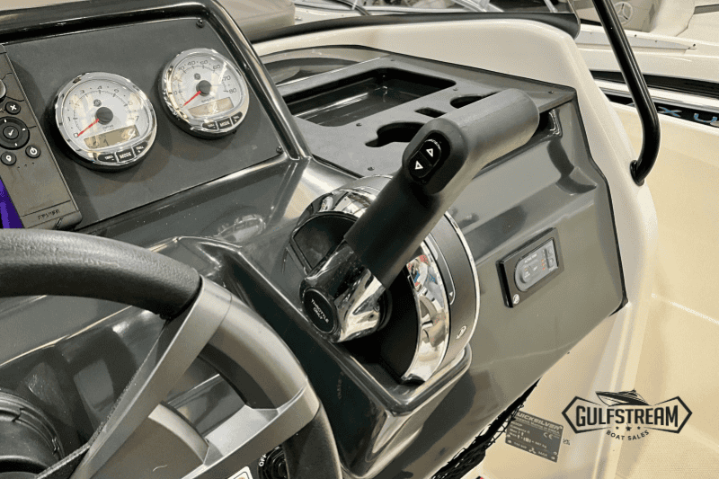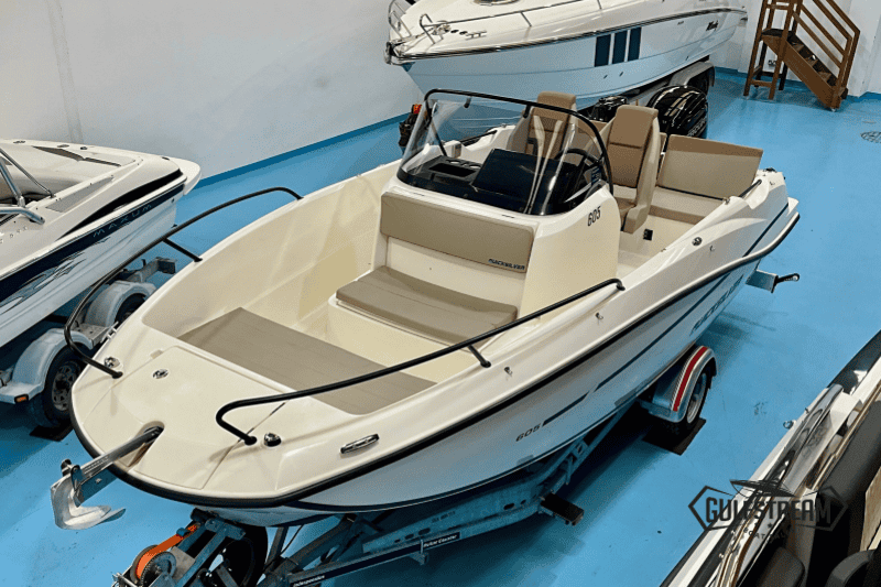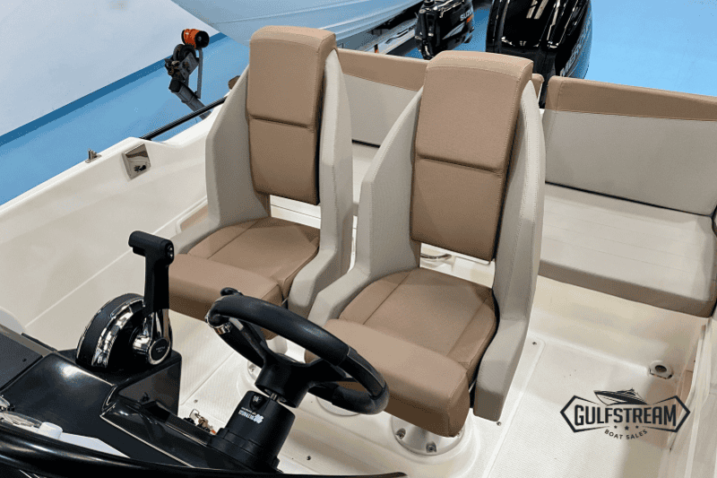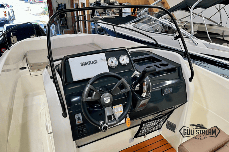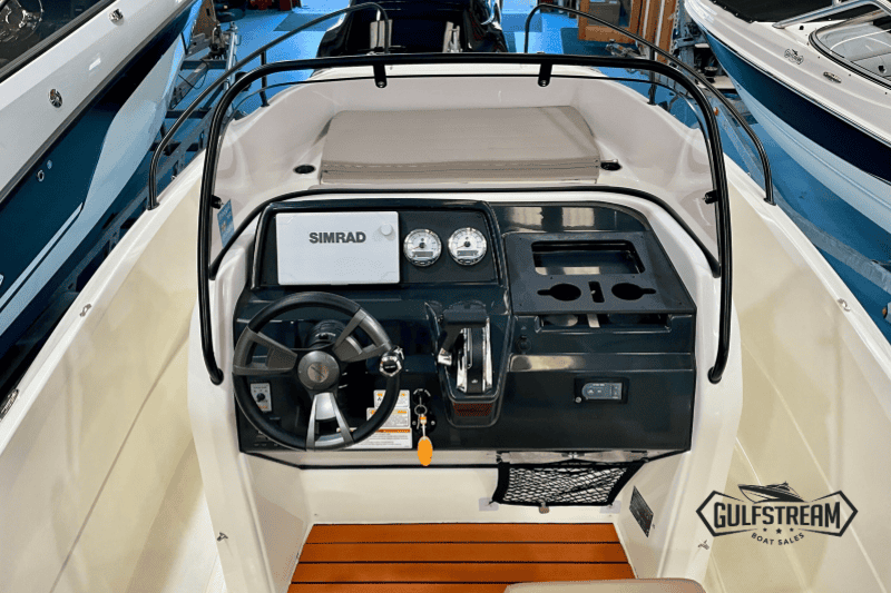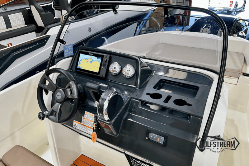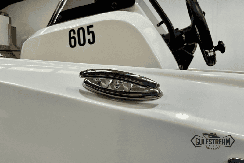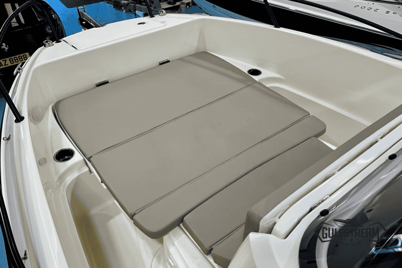 The 605’s spacious, open cockpit layout offers plenty of room for friends and family, with comfortable seating, a convertible bow sunpad, and ample storage for gear. High Gunnels and easy access to the swim platforms make her safe and practical for all ages, whether you’re swimming, fishing, or just relaxing.