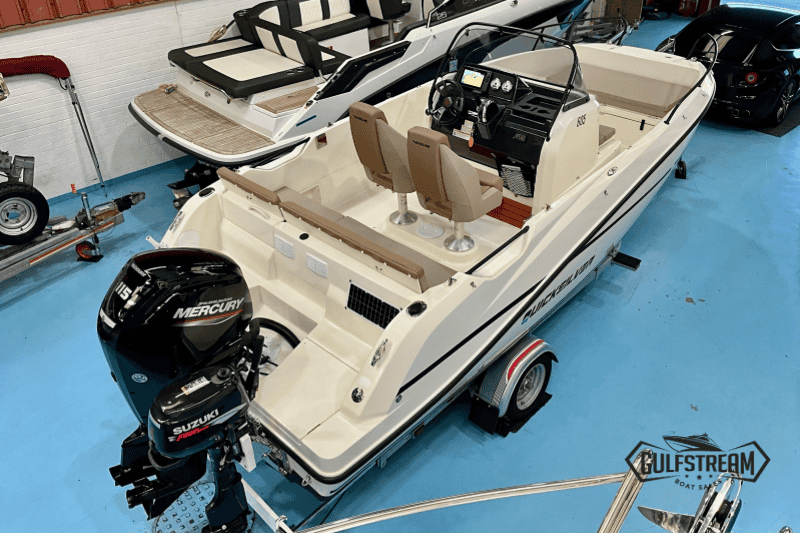 This 2024 Quicksilver 605 is a fantastic open-deck day boat, ideal for coastal cruising, fishing, or family fun on the water. Powered by a Mercury 115HP FourStroke outboard with just 4 hours of use, she’s as close to brand new as you can get — without the showroom price tag.